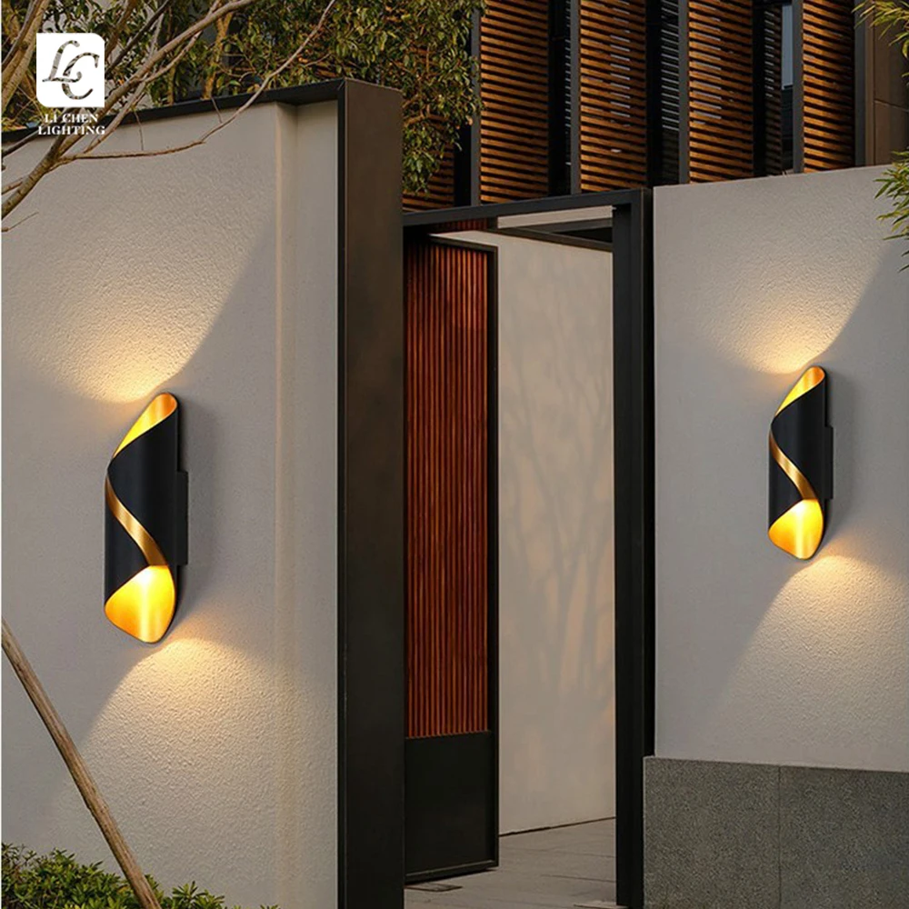 Hotel Outdoor Lighting: Modern Up/Down LED Wall Lamp with IP65 RatingThis contemporary spiral-designed wall lamp combines artistic form with practical function, featuring a sleek black finish that complements modern architectural styles. The light ...