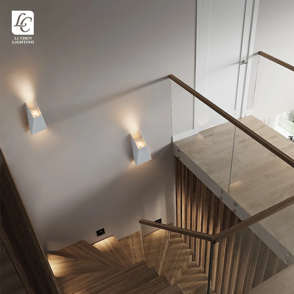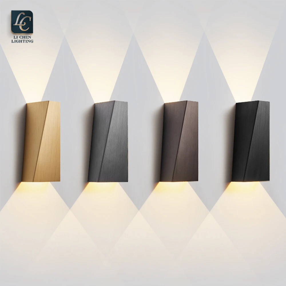 Modern Simple Up and Down Luminous Aluminum Wall LampThis minimalist wall lamp features a sleek rectangular aluminum body with a diagonal cut design, offering soft upward and downward illumination that creates elegant geometric light patterns on ...