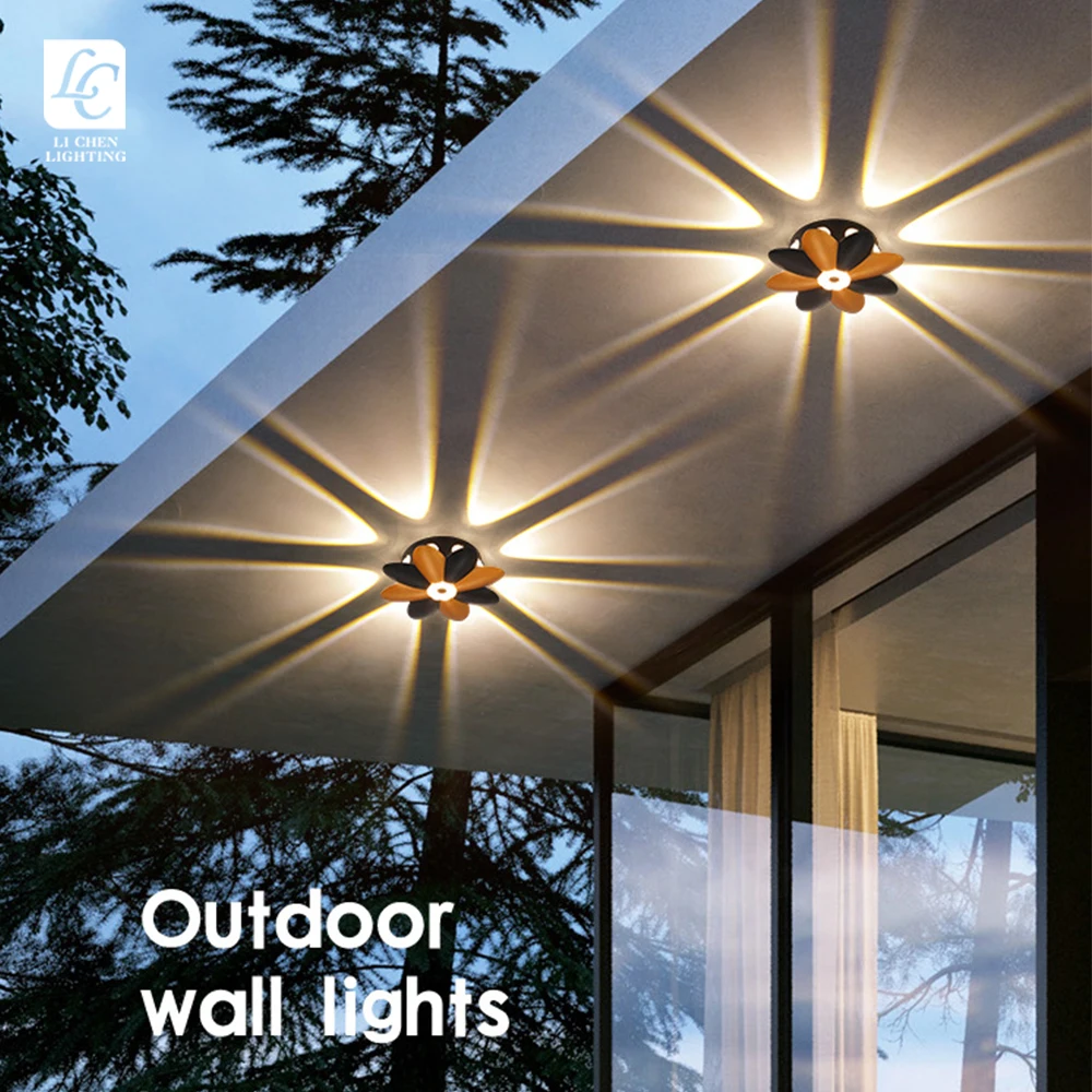Modern Black Waterproof Wall Mount Light - Floral Aluminum Sconce for Garden IlluminationThis elegantly designed outdoor wall light combines artistic floral aesthetics with modern functionality. The fixture features an eight-petal design in a sophi...
