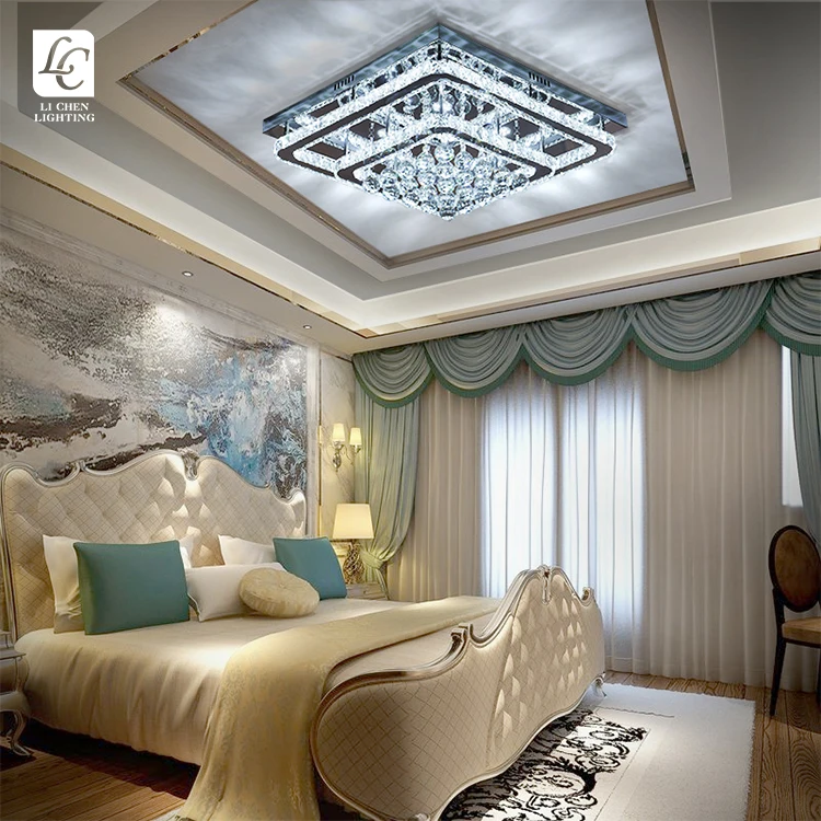 High Quality Modern Crystal LED Ceiling Lamp for Living & Dining RoomsThis luxurious crystal LED ceiling lamp showcases a multi-tiered geometric design, featuring precisely cut transparent crystals arranged in a cascading formation within a sle...