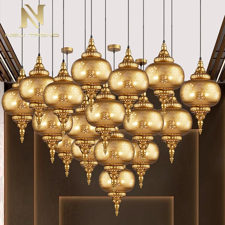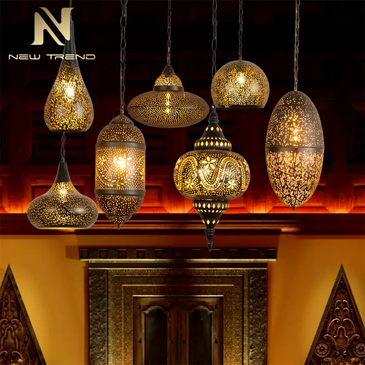 Antique Design Indoor Customization Living Room Dining Room Metal Iron Decorative Temple Pendant LightThis exquisite antique-style pendant light collection showcases seven uniquely designed metal iron lanterns, each featuring intricate openwork p...