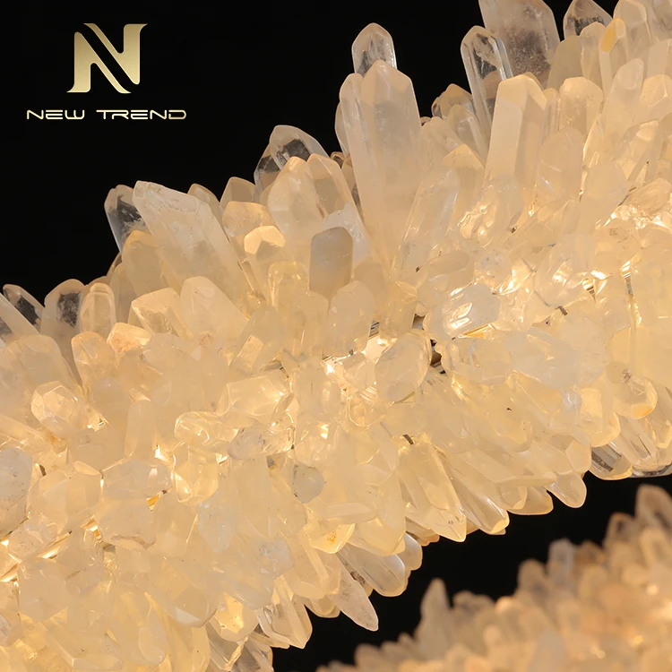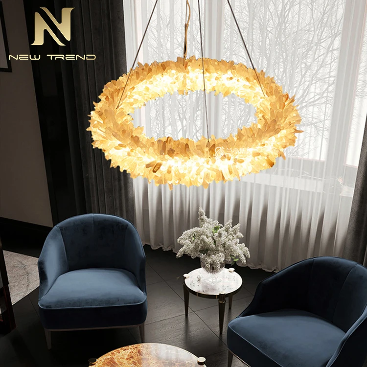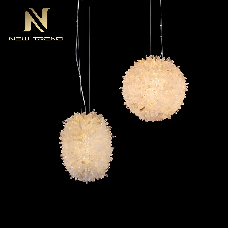 Creative Design Round Natural Crystal Chandelier Indoor Decorative Hanging Lamp LED Pendant Light