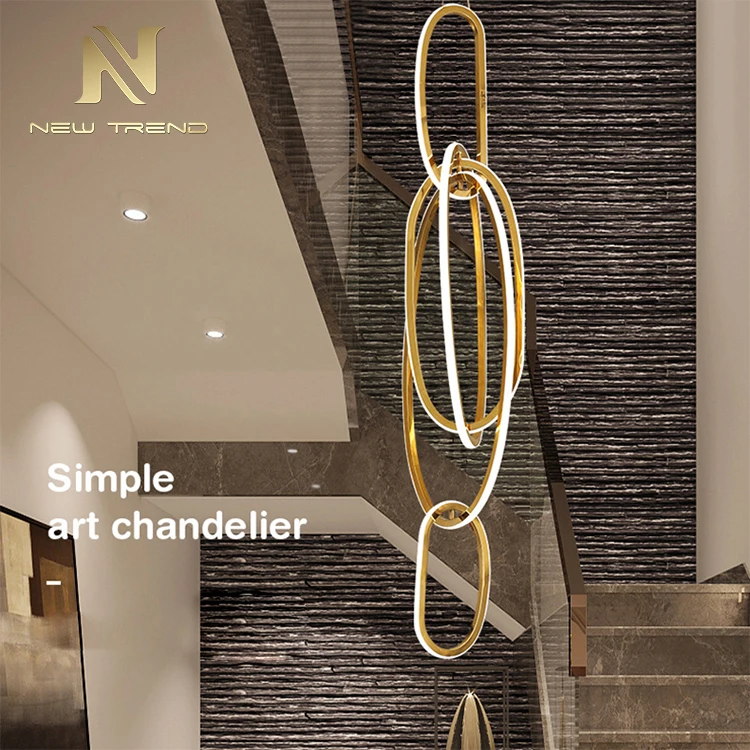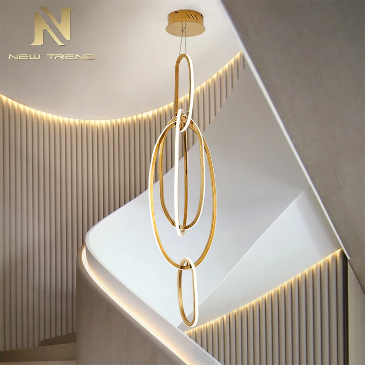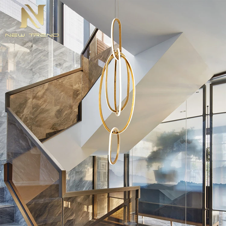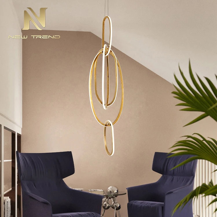 New Trend Indoor Decoration Chandelier: Home Villa Staircase Modern Metal Round Pendant LightThis stunning modern chandelier showcases an innovative design featuring interlocking golden metal rings arranged in an organic, sculptural form. The laye...