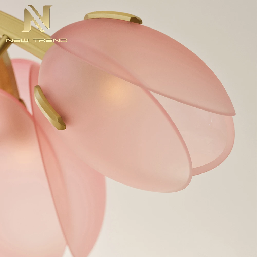 Minimalist Style Indoor Decoration Pendant Light – Villa Home Living Room Dining Glass Flower Branch LED ChandelierThis elegantly crafted minimalist chandelier combines organic inspiration with contemporary design, featuring delicate pink gl...