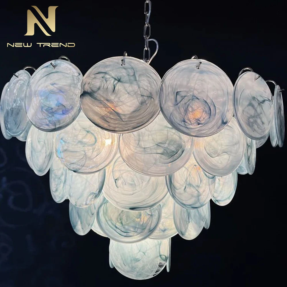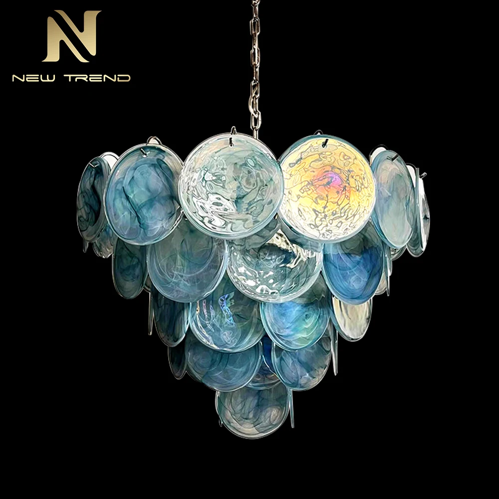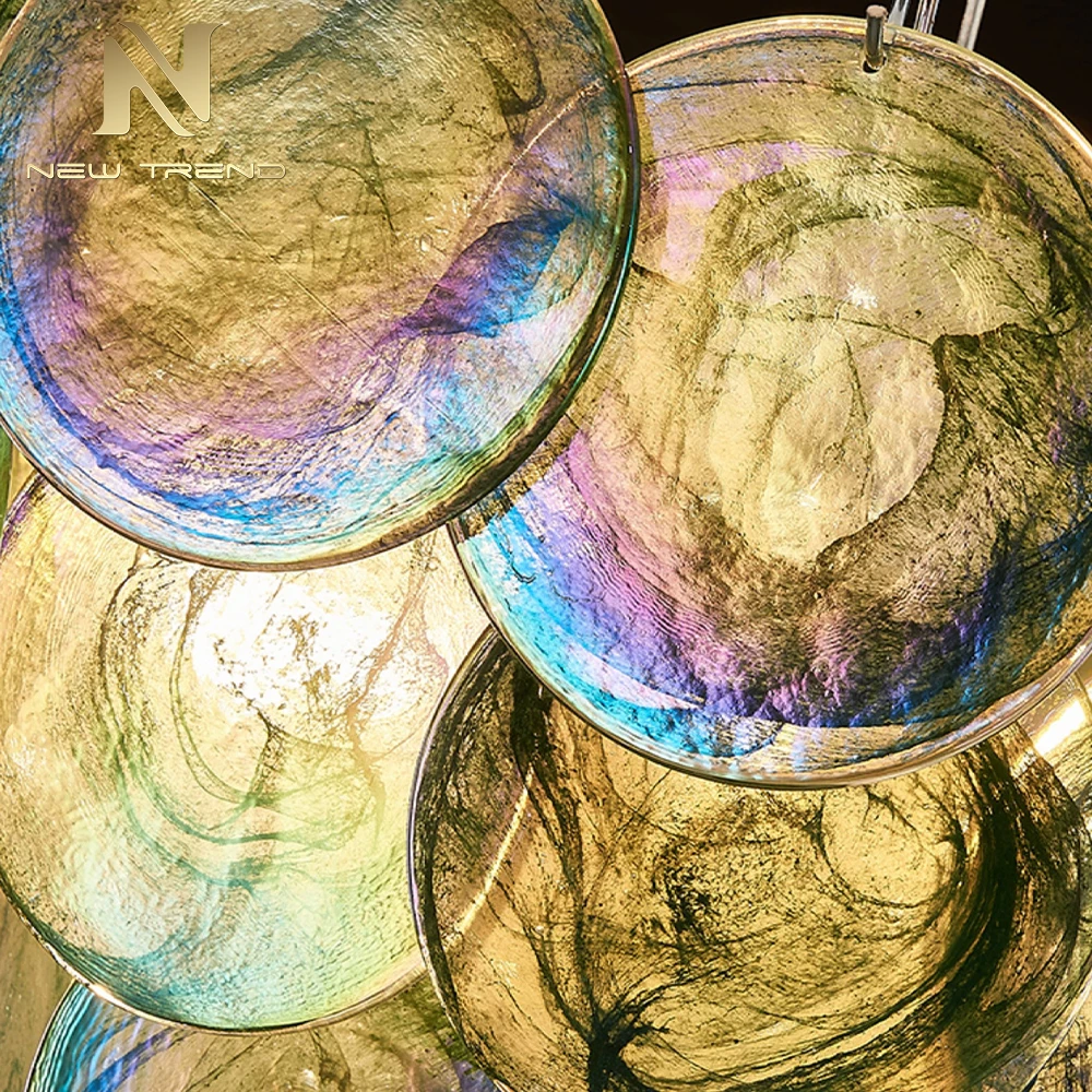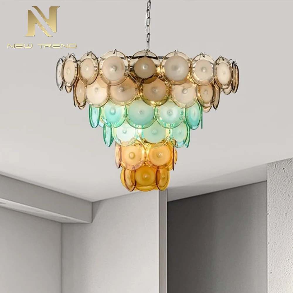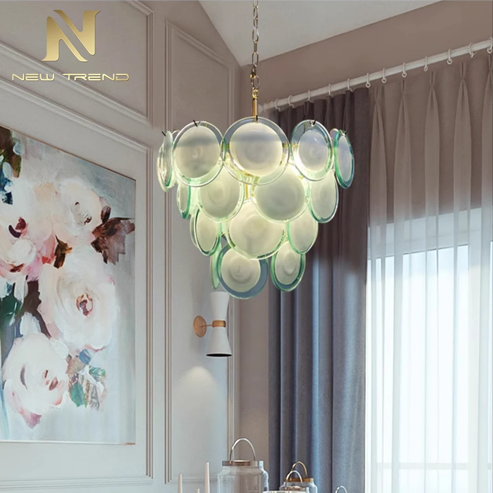 Modern Glass Disc Chandelier, Green Glass Pendant Light, Villa Dining Room Lighting, Apartment Living Room Chandelier, Layered Glass LED Light, Indoor Decoration Pendant, Translucent Glass Chandelier, Contemporary Suspended Light, Customizable Modern Chandelier, Artistic Glass Disc Lighting.