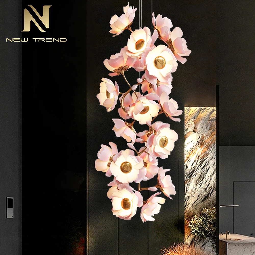 CPL-272 Natural Style Indoor Inspired Lamp Villa Apartment Living Room Staircase Ceramic Flower Wedding LED Chandelier Light