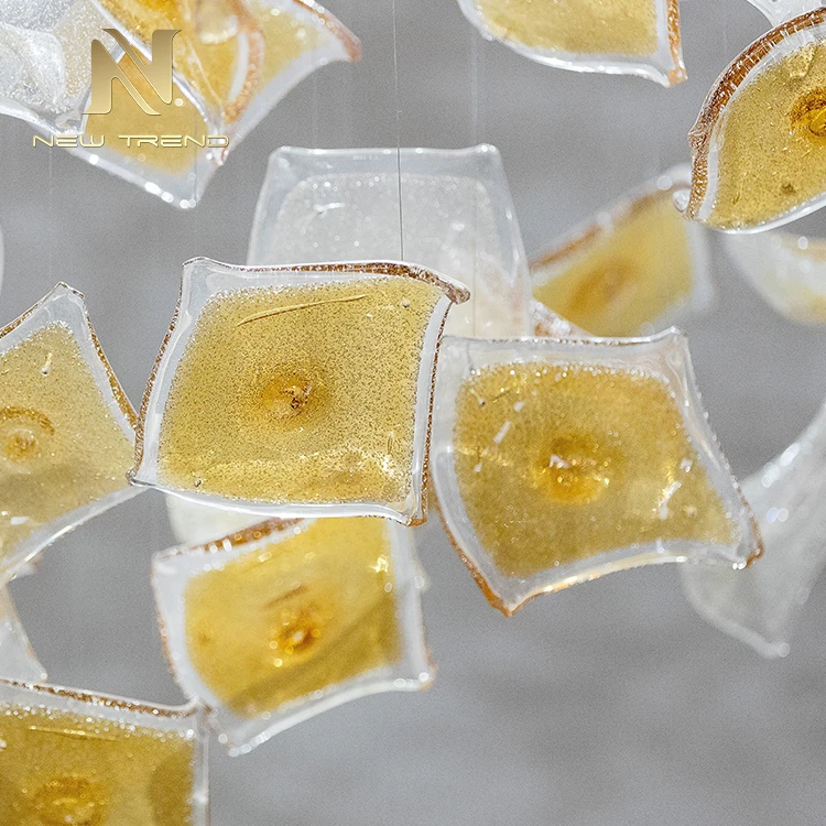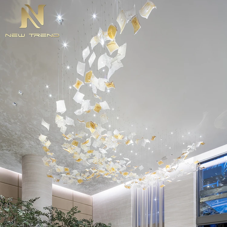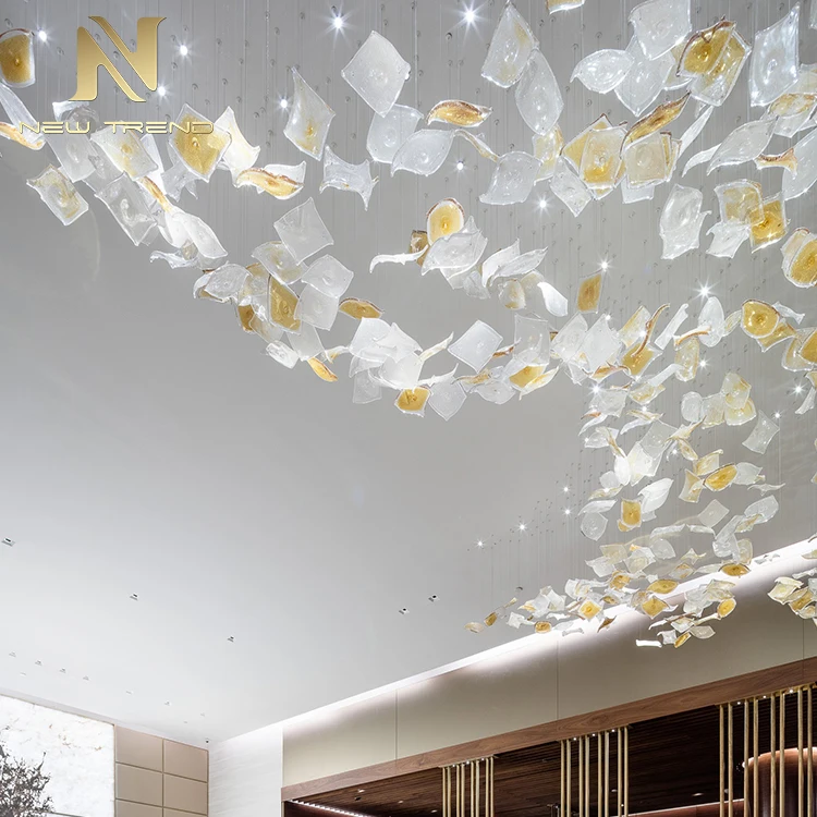 Custom Large Project Hall Hotel Lobby Luxury Decoration Bespoke Glass Chandelier LampThis extraordinary bespoke glass chandelier redefines luxury lighting with its breathtaking artistic composition of irregular, handcrafted glass pieces suspended i...