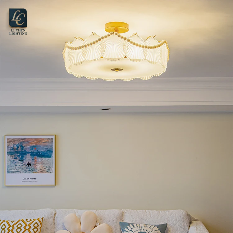 Luxury Style Indoor Decoration Hotel Corridor Villa Glass Modern LED Ceiling LampThis exquisite ceiling lamp embodies modern luxury through its organic, petal-like design, crafted from five gracefully curved panels of translucent white glass that r...