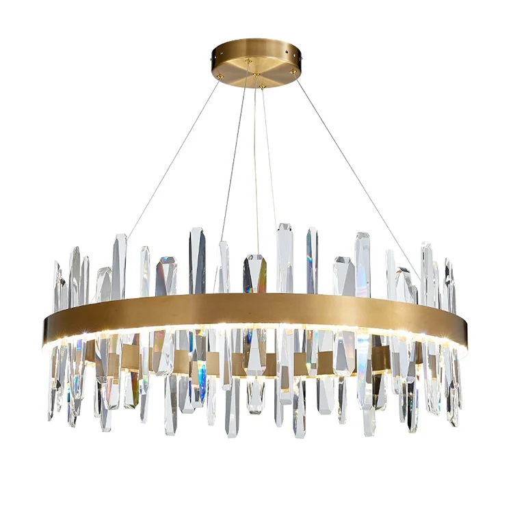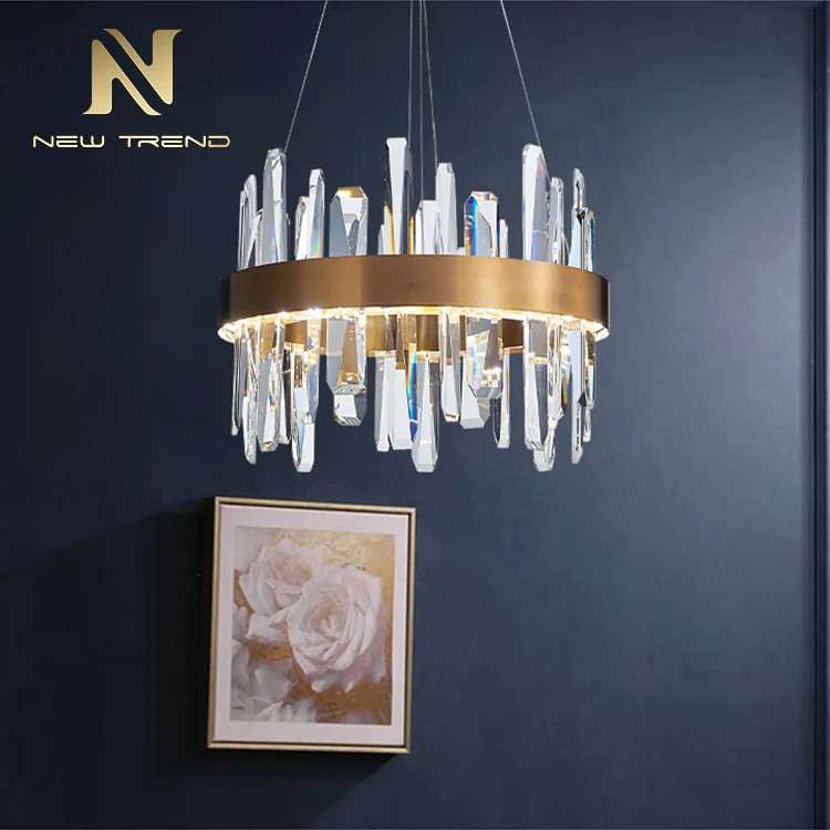 Contemporary style residential decoration hanging light stainless steel frame crystal led chandelier