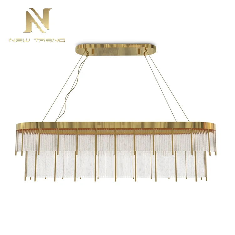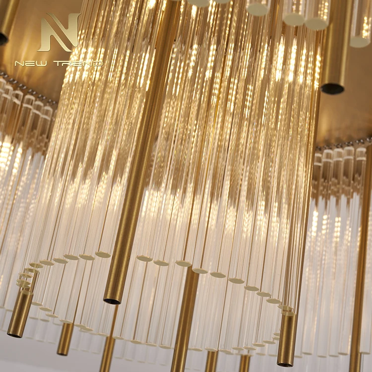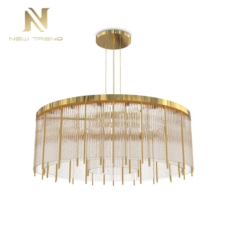 Light Luxury Style Custom Art Frame Glass Chandelier – Indoor Decoration Lighting ProjectThis exquisite light luxury-style chandelier features a multi-tiered circular frame in an elegant gold finish, layered with vertically suspended transpar...