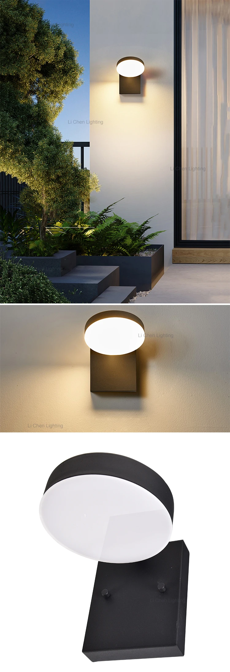 lampu Dinding LED Luar Ruangan Eksterior – Pencahayaan Dekoratif Tahan Air Standar AS IP54 Desain bulat bersih pada lampu dinding luar ruangan modern ini dilengkapi pelat belakang persegi gelap yang menciptakan kontras mencolok terhadap dinding berwarna terang. F...