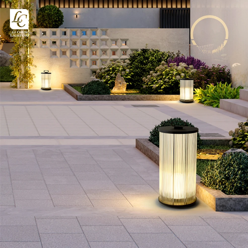Lampu Bollard Taman IP65 Tahan Air untuk Jalur Taman Luar Ruangan, Lampu LED untuk Rumput Ini memiliki desain silinder minimalis dengan eksterior kaca bergelombang transparan atau akrilik, menghadirkan cahaya lembut dan hangat yang ideal untuk penerangan...