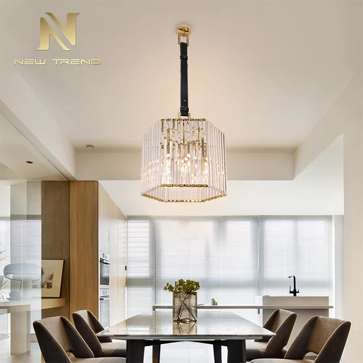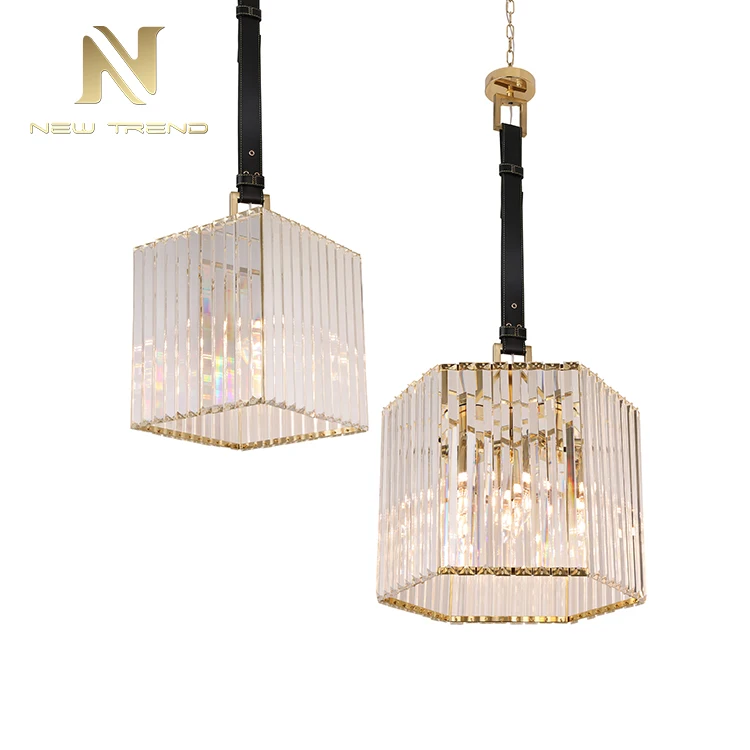 lampu gantung kristal persegi, lampu chandelier LED bingkai emas, pencahayaan dalam ruangan minimalis, lampu gantung modern, hiasan batang kristal, lampu gantung ruang makan, lampu langit-langit skandinavia, lampu chandelier geometris mewah, perangkat LED hemat energi, desain kontemporer kristal emas