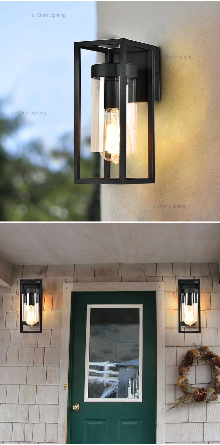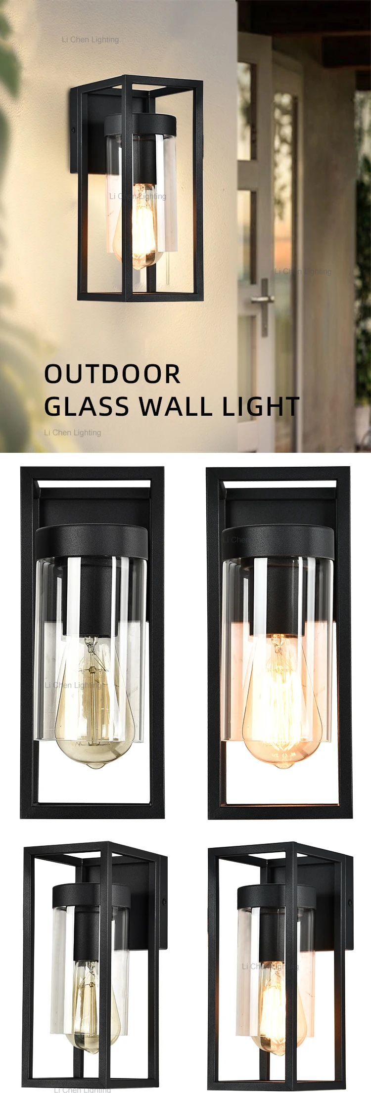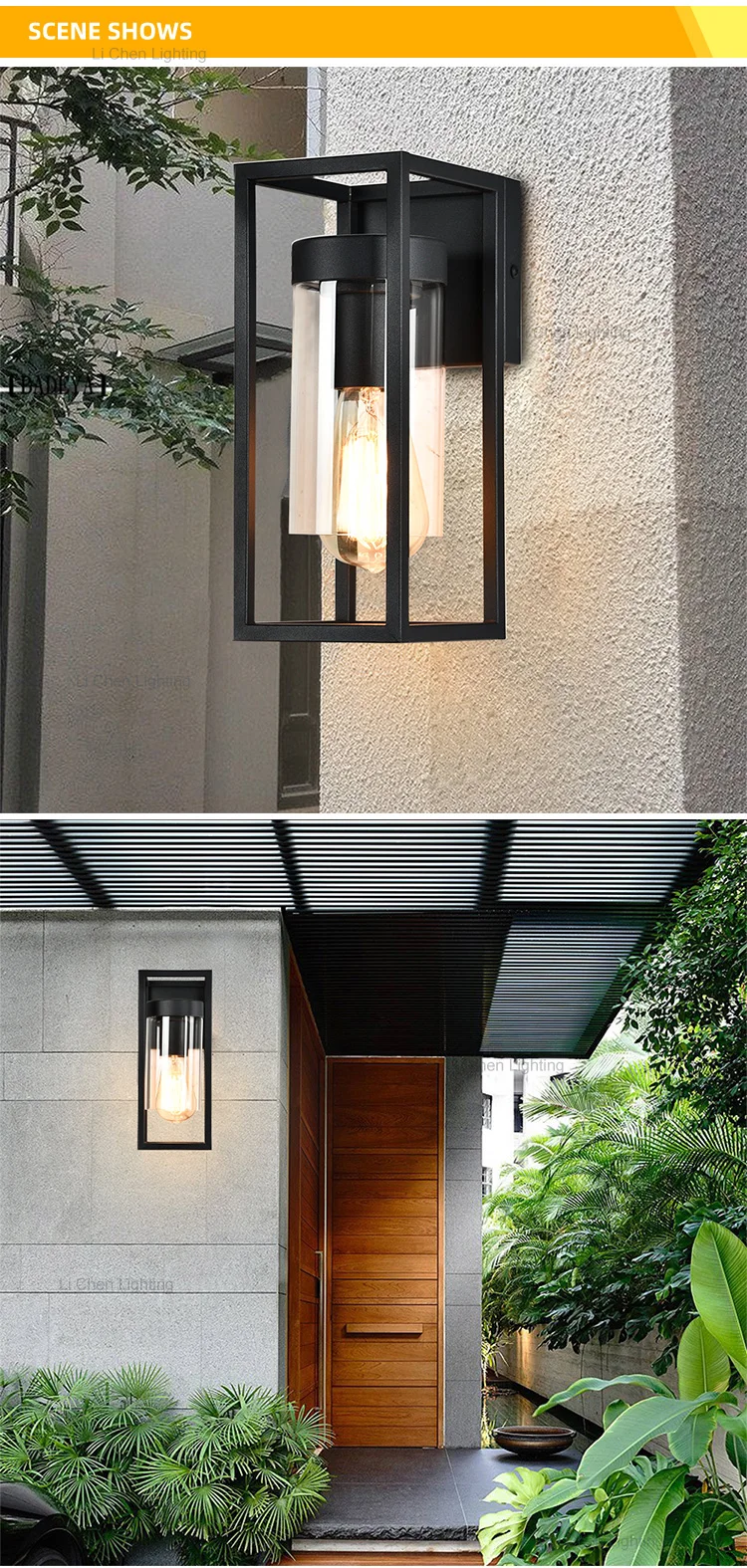 투명 유리 쉐이드가 장착된 정사각형 블랙 메탈 프레임 E26/E27 LED 전구 사용 가능 (따뜻한 백색 권장) 모든 기상 조건에서도 견딜 수 있는 방수 구조 벽면, 울타리 또는 출입구에 간편하게 설치 가능