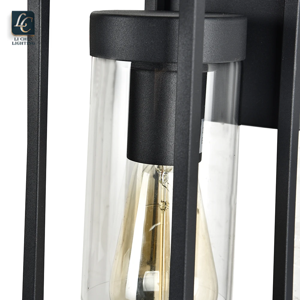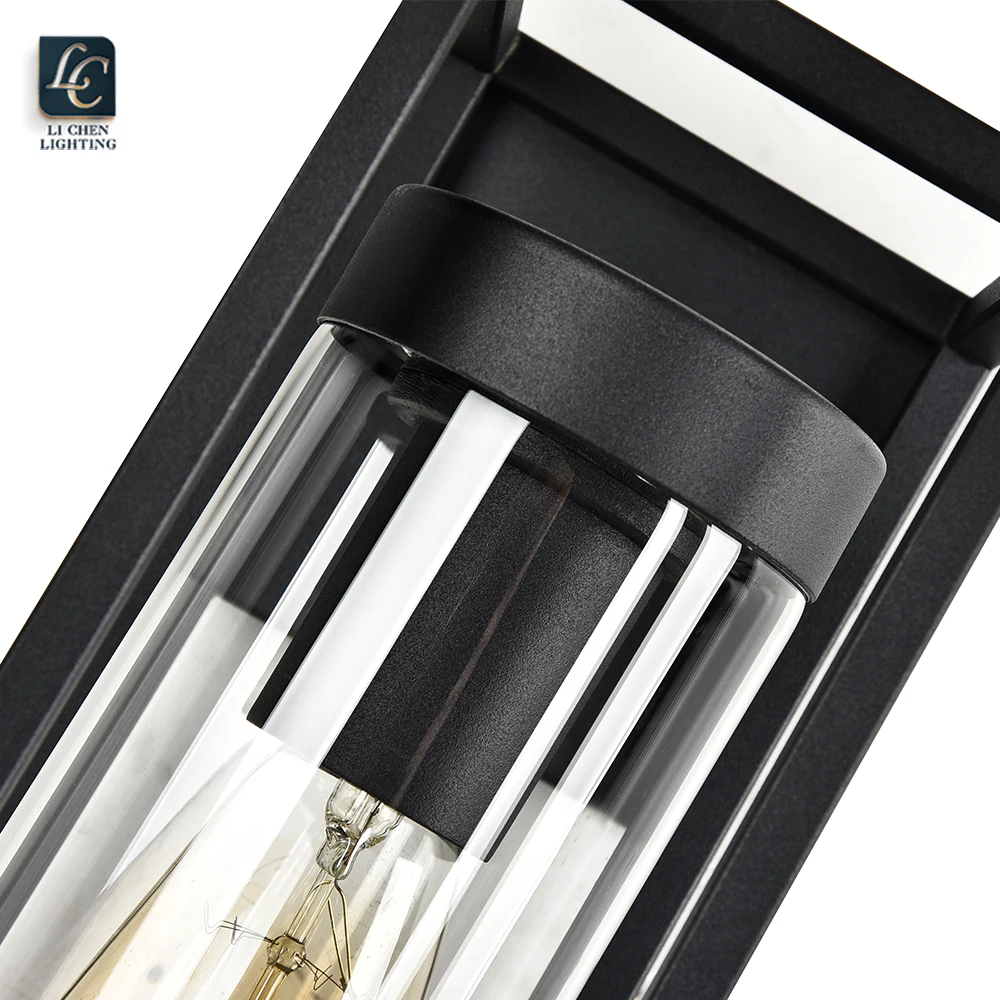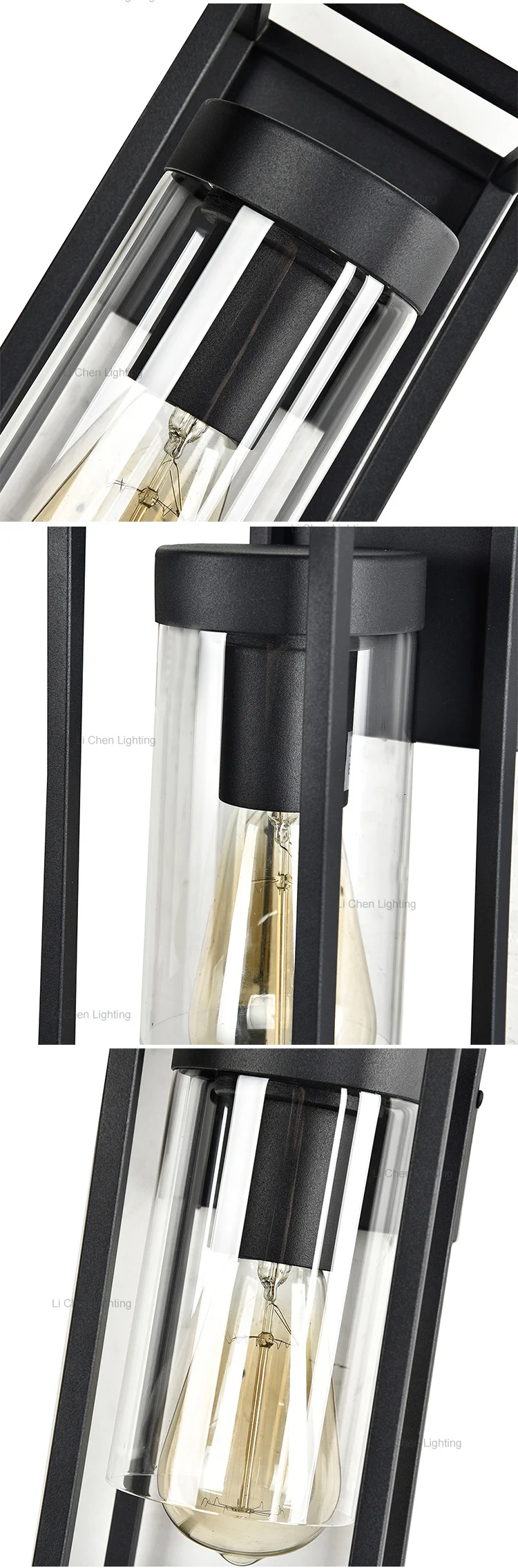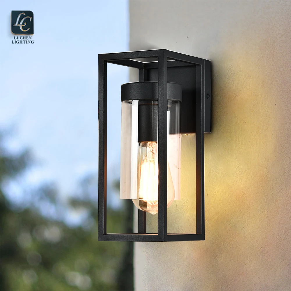 투명 유리 쉐이드가 장착된 정사각형 블랙 메탈 프레임 E26/E27 LED 전구 사용 가능 (따뜻한 백색 권장) 모든 기상 조건에서도 견딜 수 있는 방수 구조 벽면, 울타리 또는 출입구에 간편하게 설치 가능