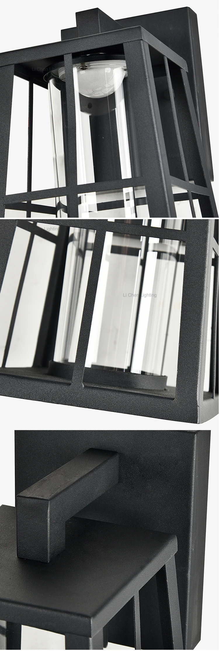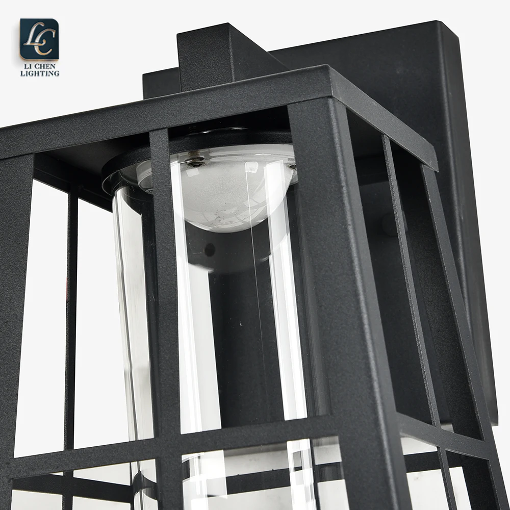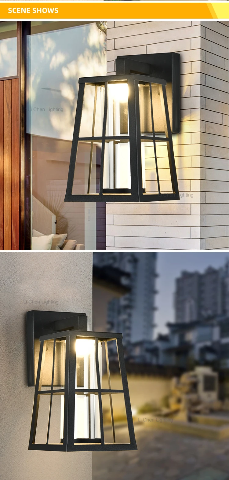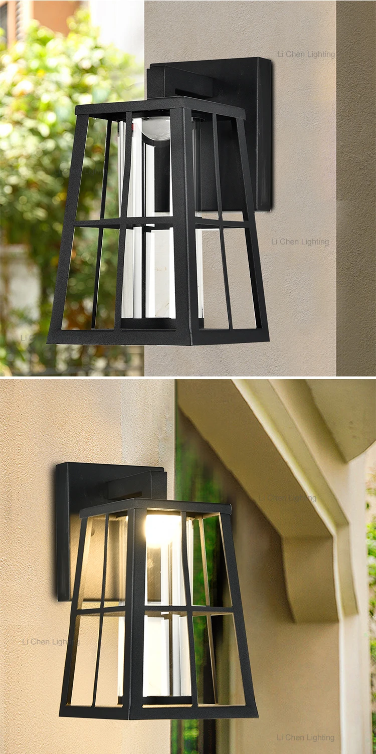 이 현대적인 실외 벽등은 세련된 기하학적 그릴 디자인과 내구성 있는 블랙 메탈 구조를 결합하여 스타일과 견고함을 모두 제공합니다...