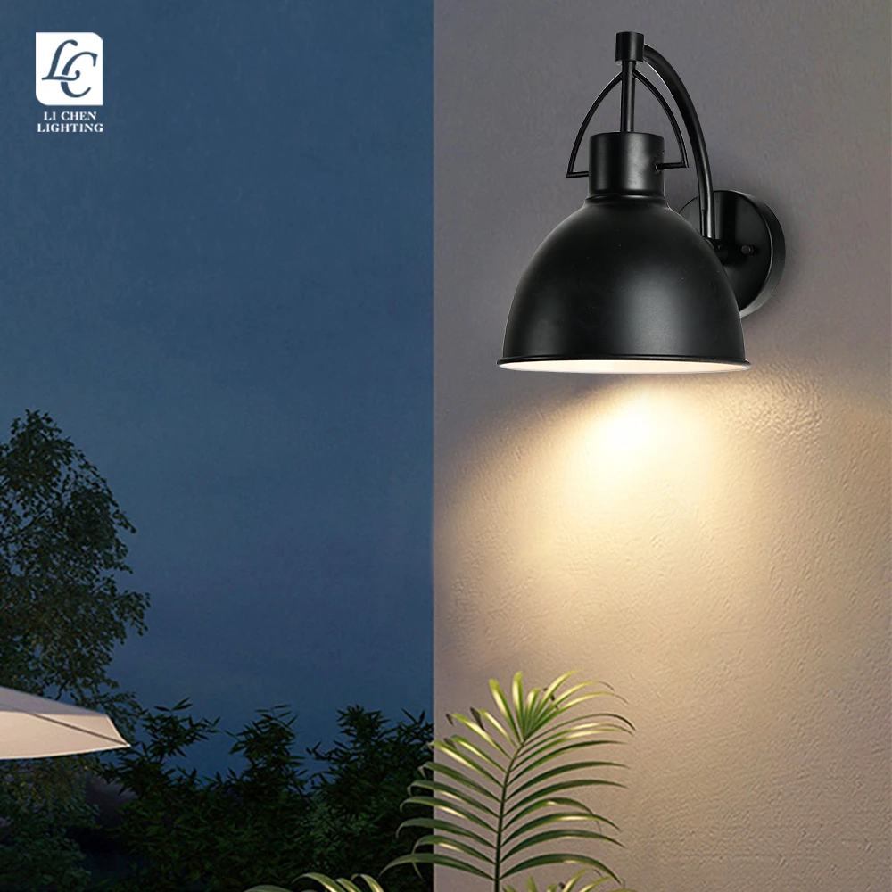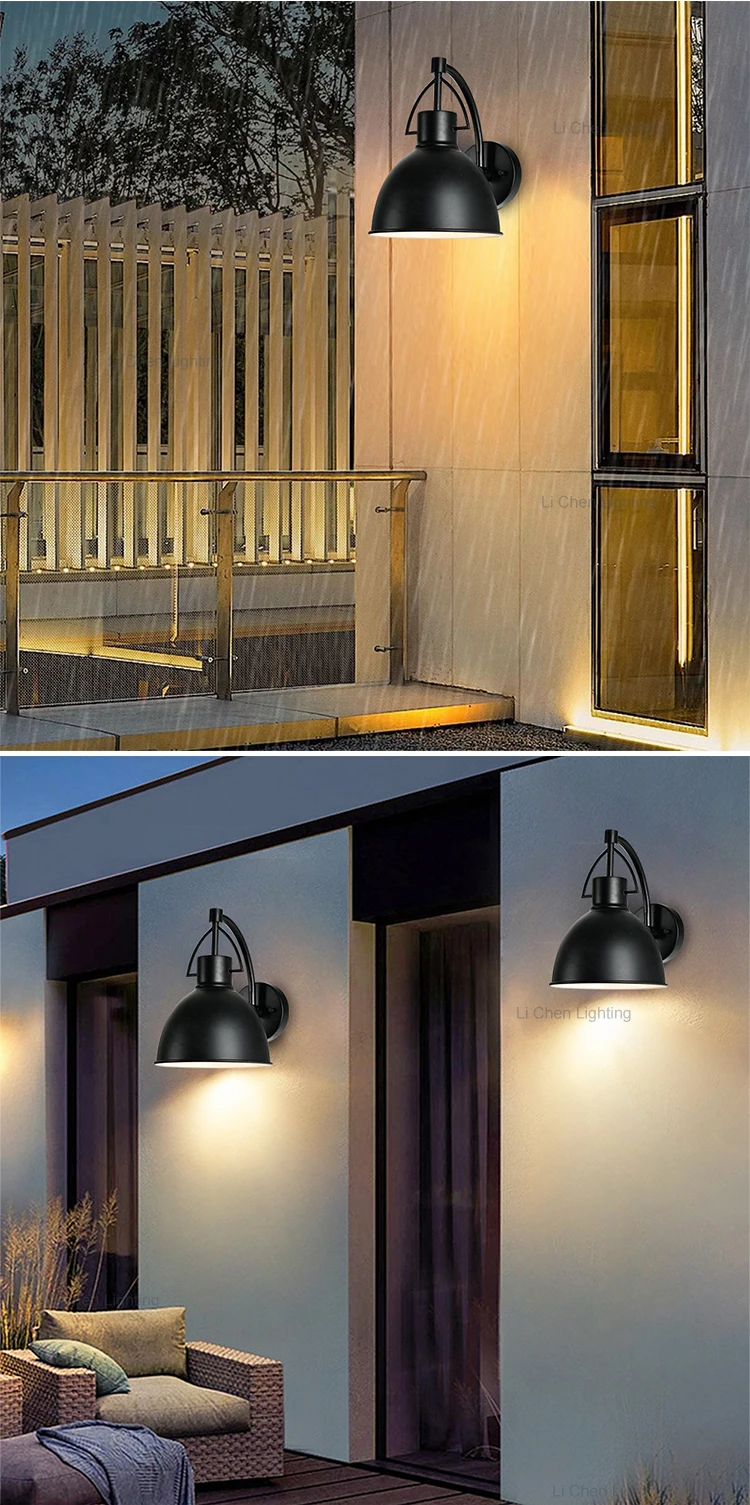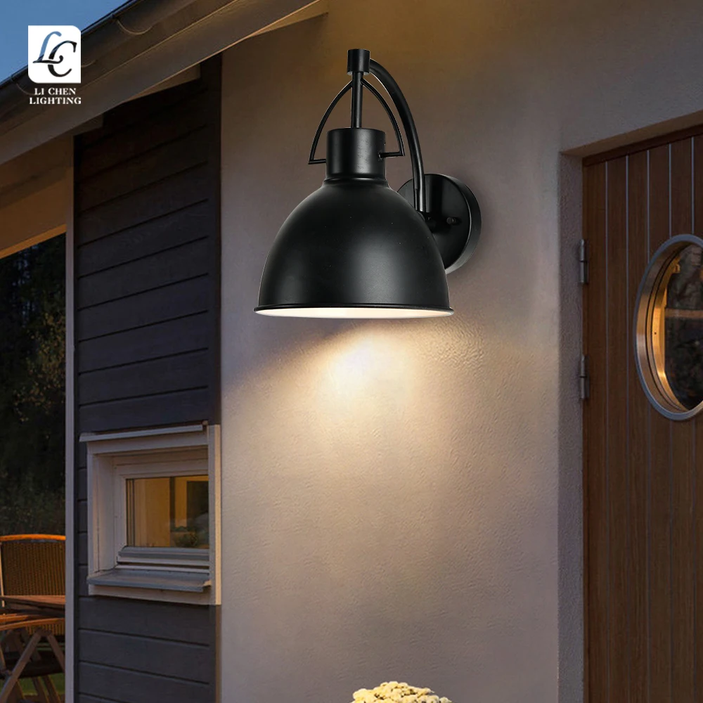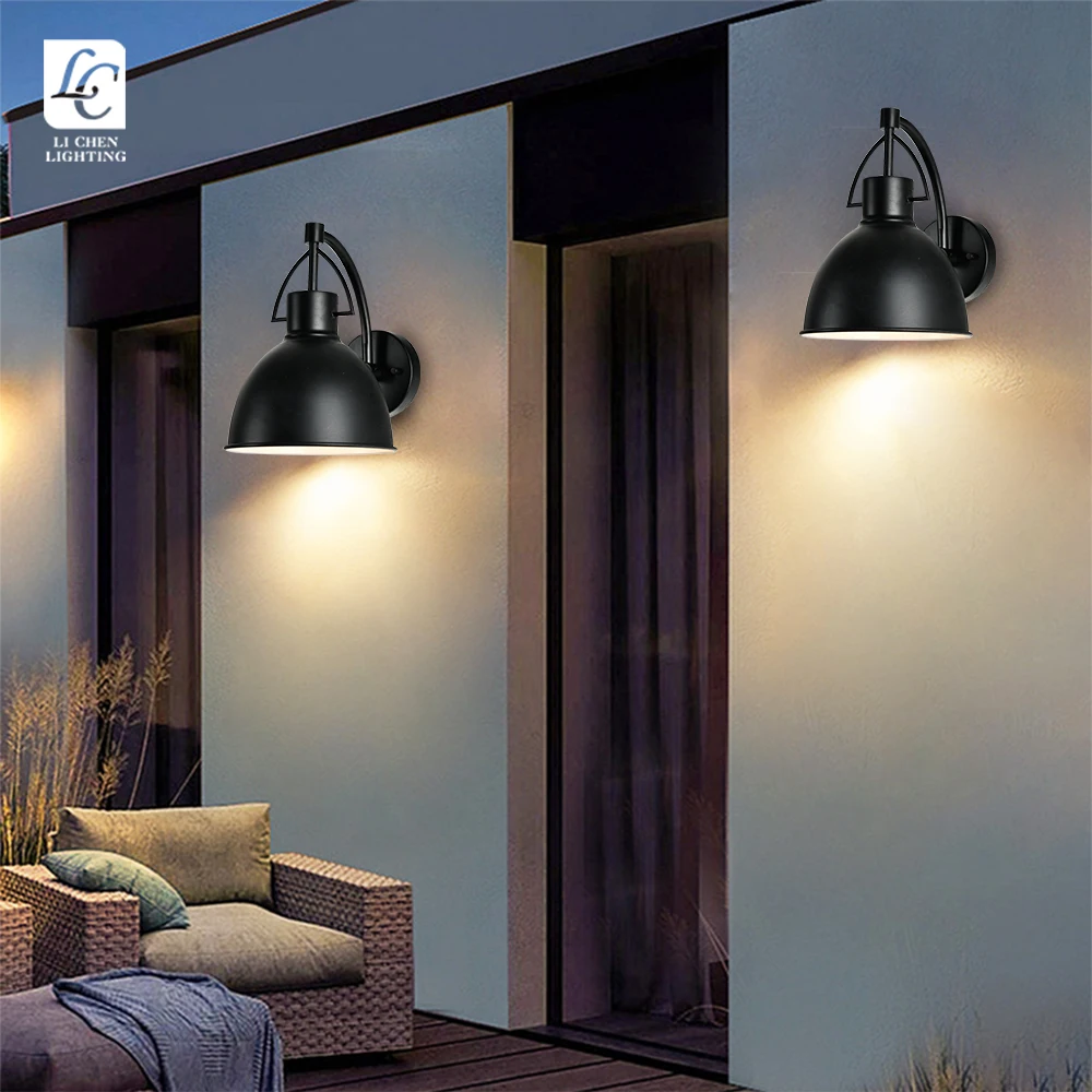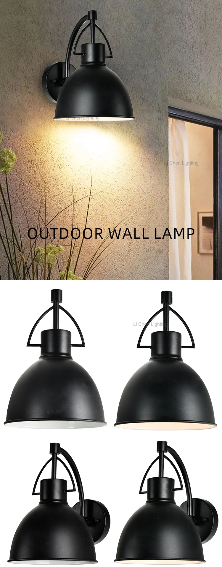 BD50 실외 레트로 인더스트리얼 LED 벽등 실외 정원용 검정 철제 마ント르 E27 벽 조명 램프