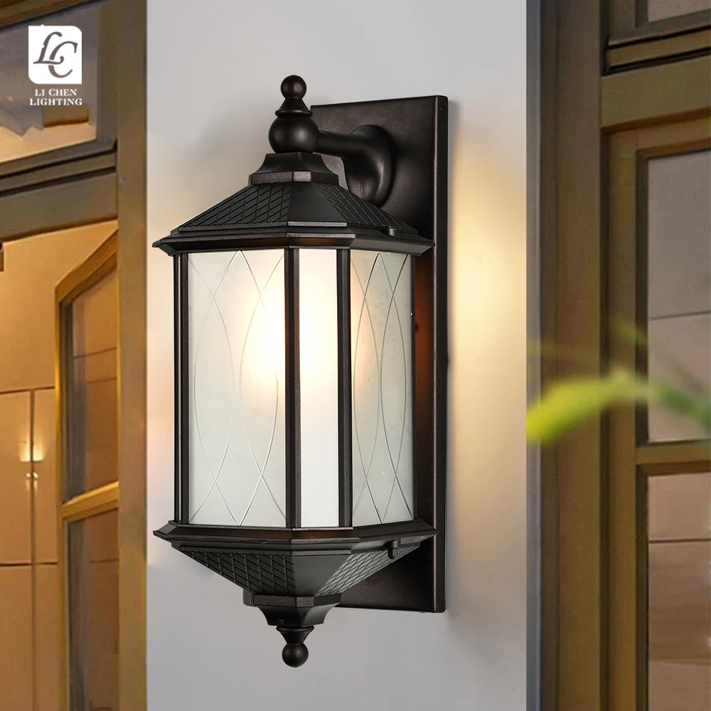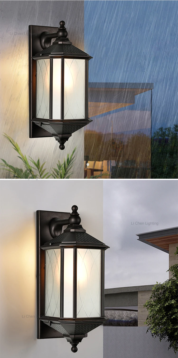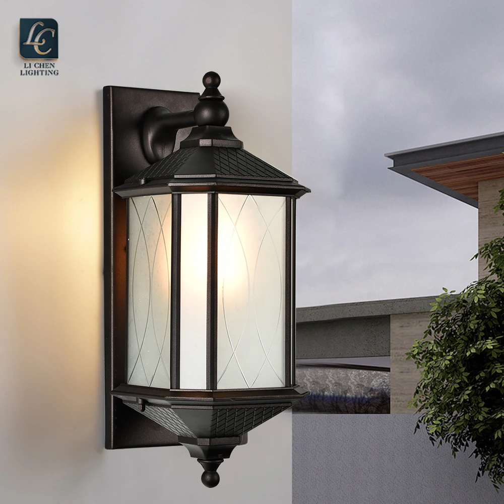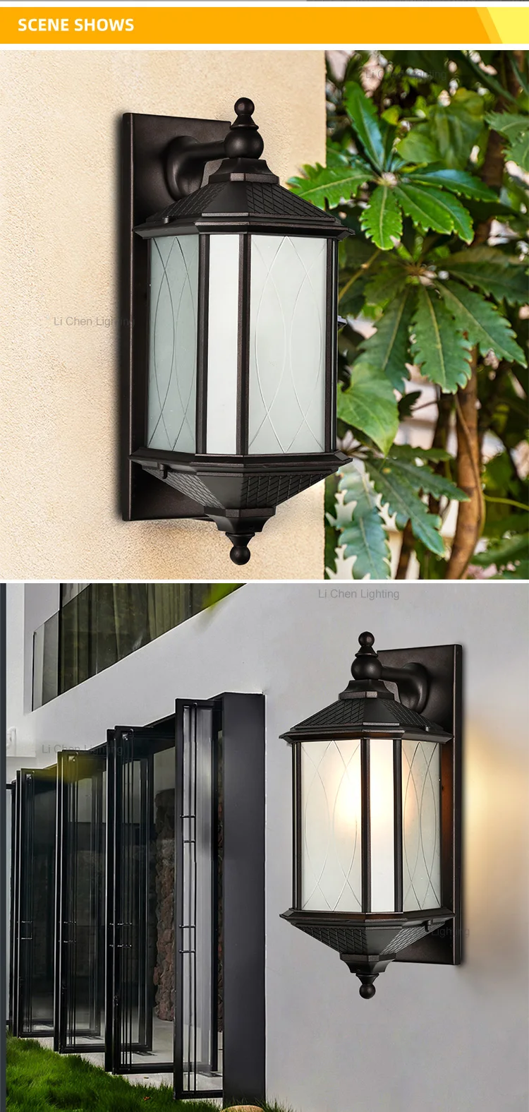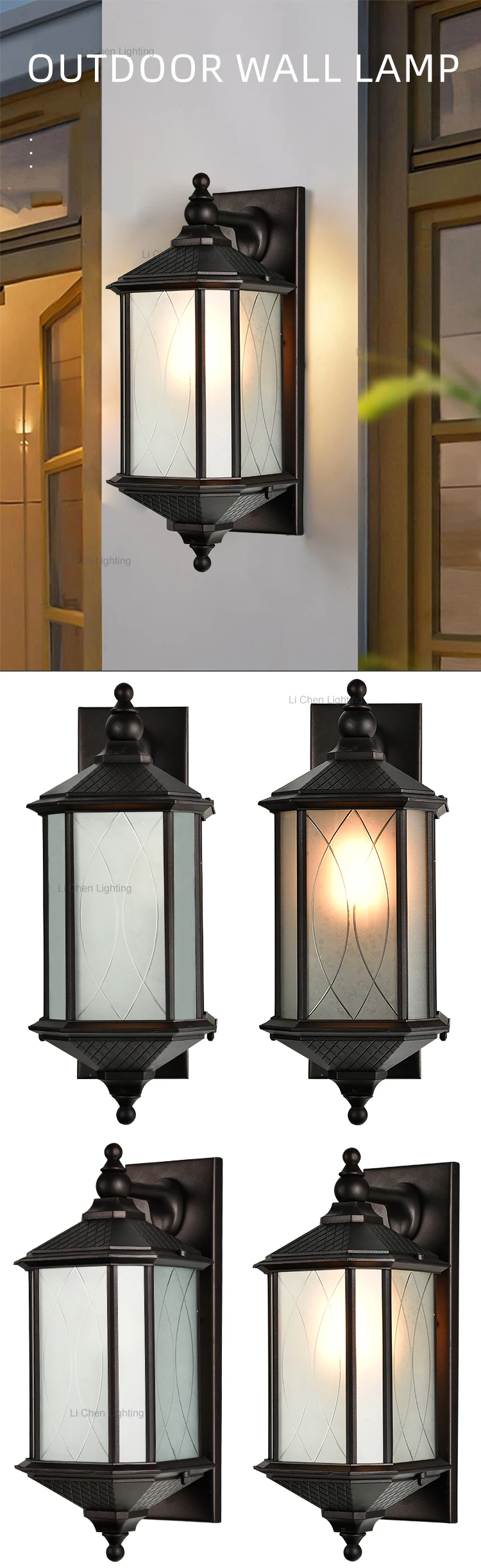 ETL 인증 현대식 IP65 벽 부착형 현관등 – 실외용 방수 LED 유리 벽등 (E27 소켓 포함) 클래식한 등불 스타일의 현관등으로, 시간을 초월한 디자인과 현대적 내구성을 겸비했습니다. 어두운 청동 또는 검정 금속 프레임과 ...