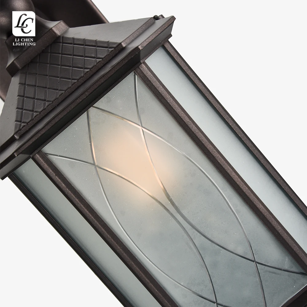 ETL 인증 및 IP65 방수 등급 미묘한 에칭 디테일이 들어간 매트 유리 쉐이드 부식 방지 마감 처리된 어두운 청동색/검정색 금속 프레임 E27 LED 전구와 호환 (따뜻한 흰색 권장) 드립 레지와 밀폐형 유리 패널을 갖춘 내구성 있는 디자인