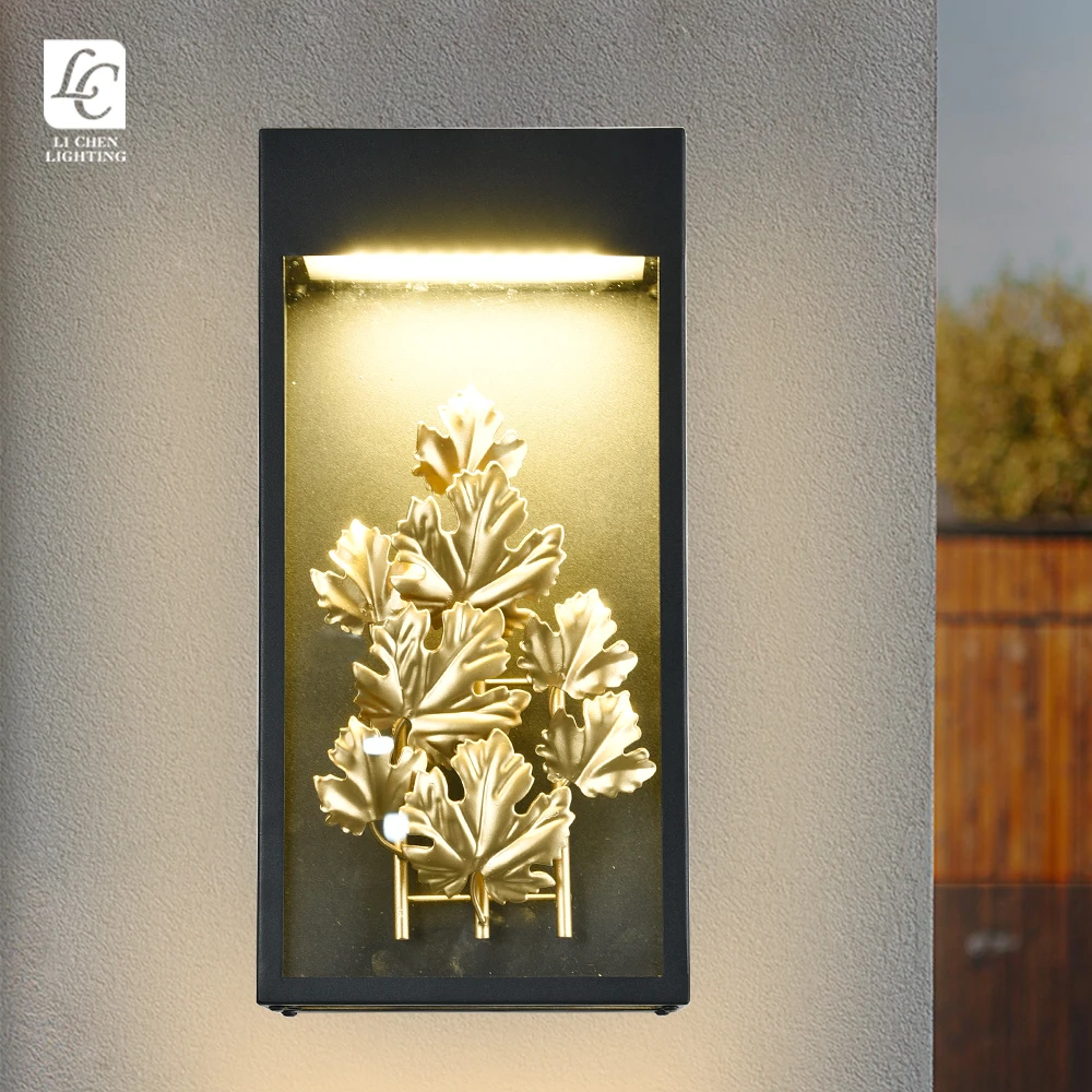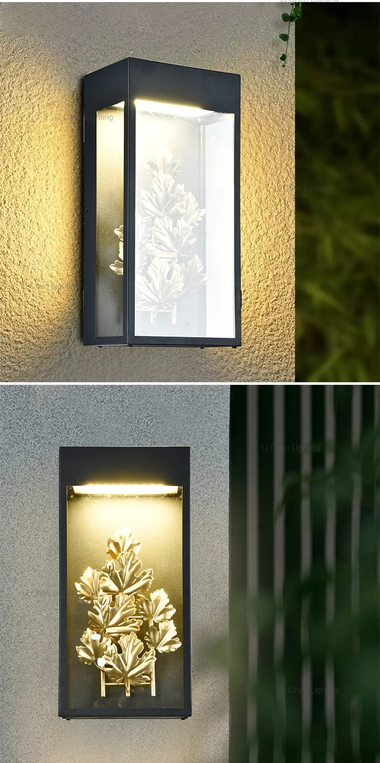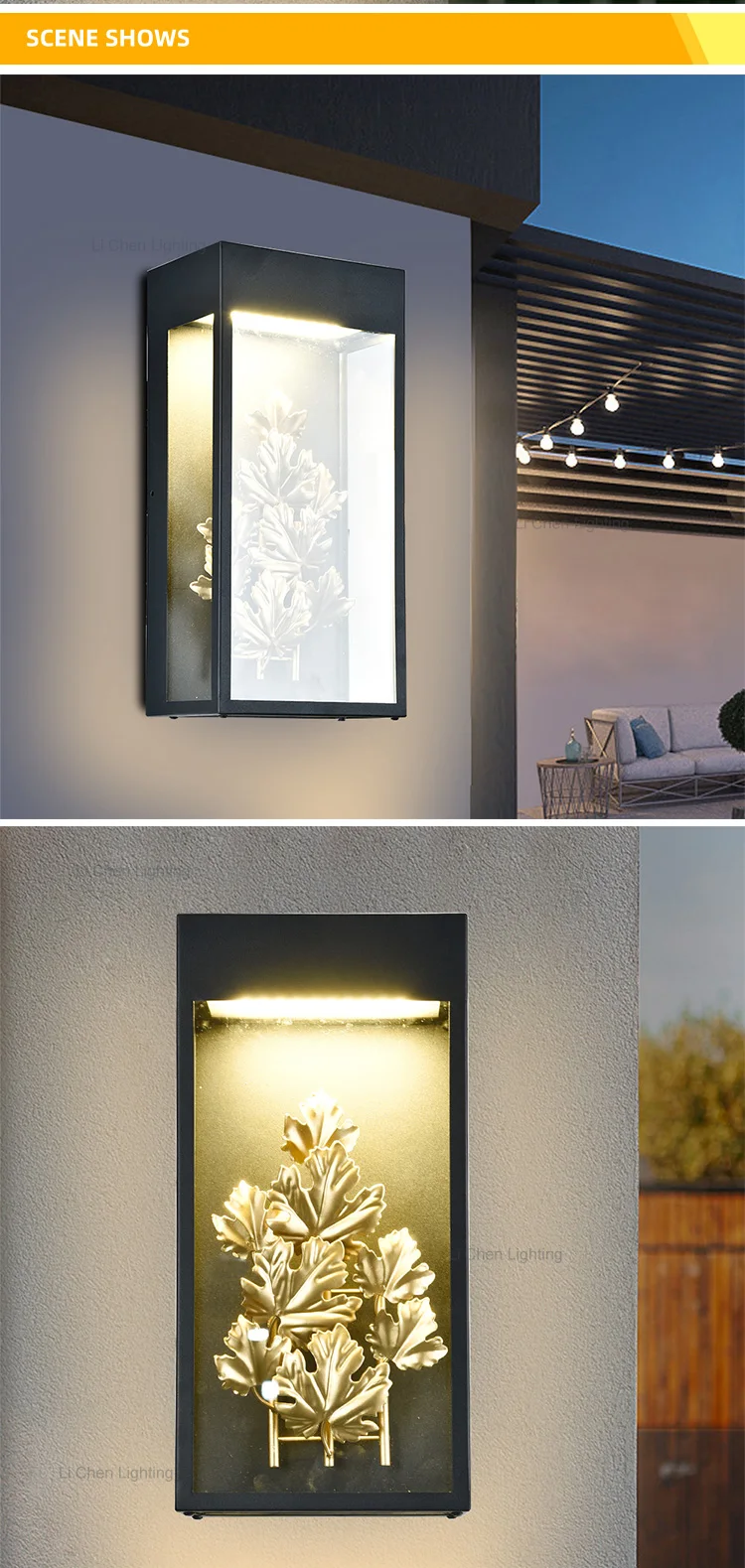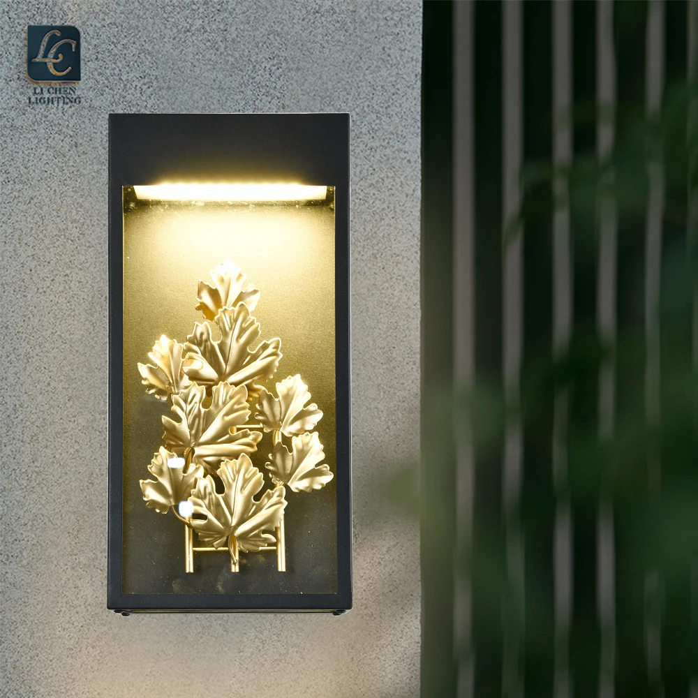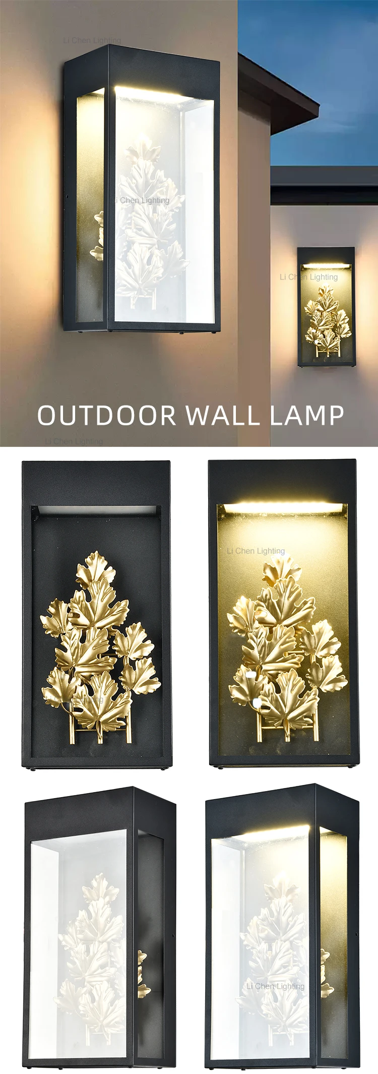 BD55 정원 야외 조명 빌라 복도 외벽 분위기 장식 조명 정원 풍경 황금 잎 유리 LED 벽등
