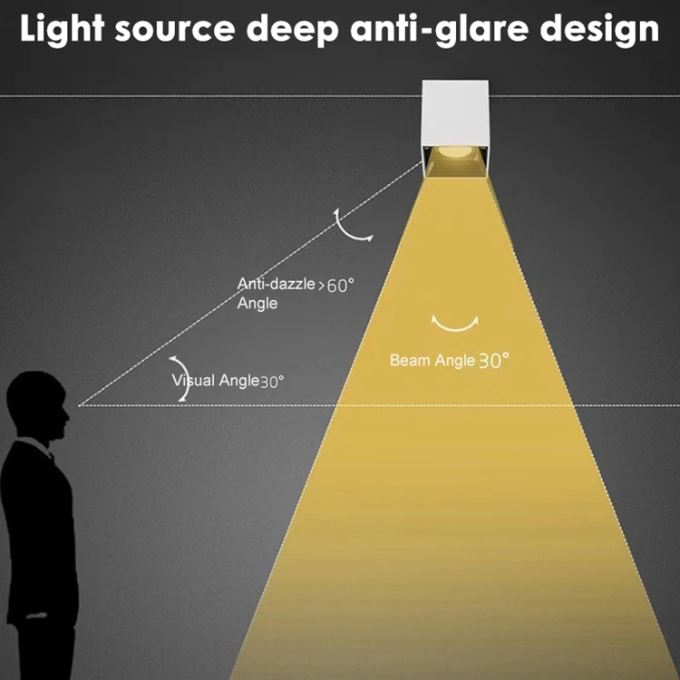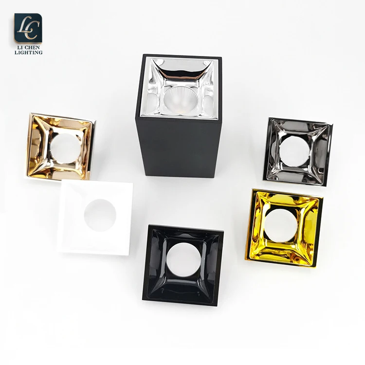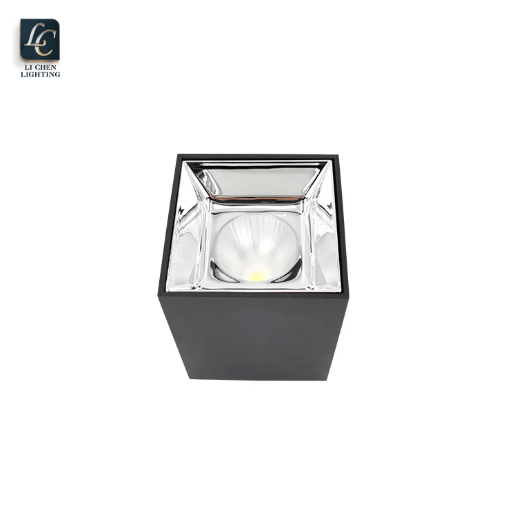 Hot Selling Ceiling Surface Mounted Spotlight: Anti-Glare LED Downlight for Hotel & OfficeThis modern surface-mounted downlight features a minimalist square design with a deep black finish, housing a precision-engineered reflector cup that ensu...
