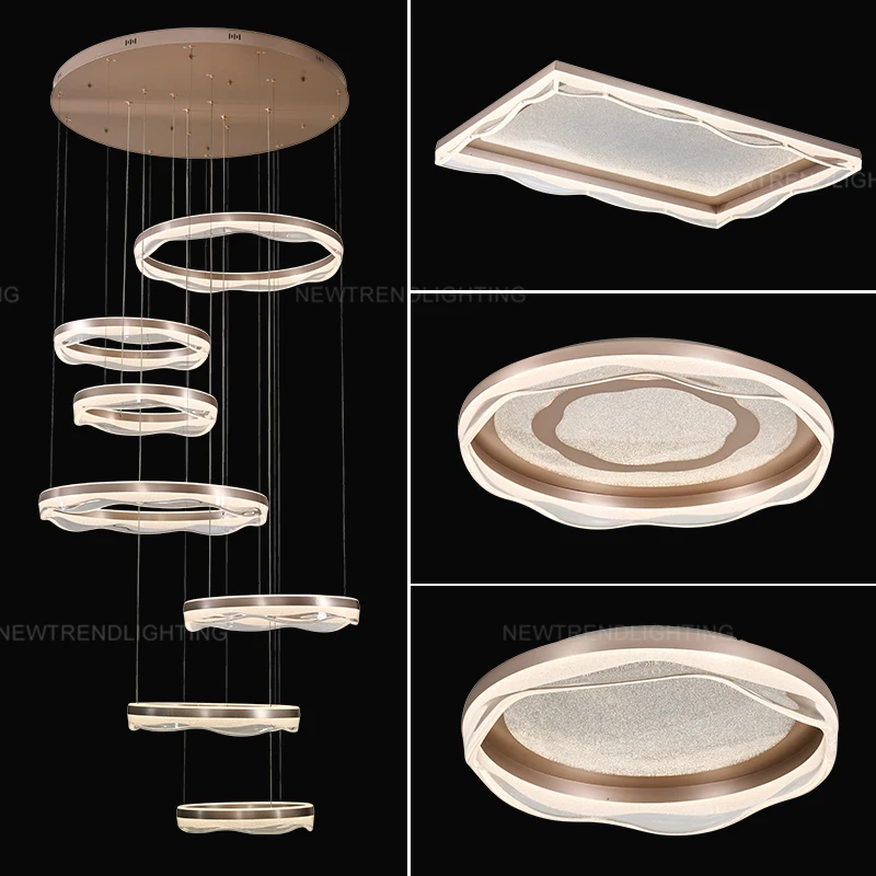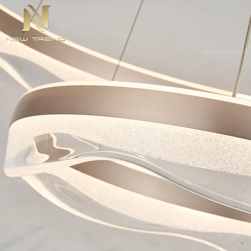 Contemporary Indoor Decoration Pendant Light for Living Room, Dining Room, Restaurant, and Home Office – Acrylic LED Ring ChandelierThis modern acrylic LED ring chandelier showcases a sleek, minimalist design with its circular form crafted from high-transparency acrylic, embedded with energy-efficient LED lighting that emits a soft, uniform glow. The fixture’s clean lines and floating appearance create an elegant yet understated centerpiece, ideal for enhancing contemporary living rooms, dining areas, restaurants, or home offices. Its versatile and lightweight structure allows for single or clustered installations, adapting seamlessly to various ceiling heights and spatial layouts.The pure black background emphasizes the chandelier’s luminous presence, while the gold or silver metallic accents add a touch of refined contrast. Easy to install and customizable in size or color temperature, this pendant light combines functional illumination with artistic simplicity, making it a perfect fit for modern interior themes.Acrylic LED Ring Chandelier, Contemporary Pendant Light, Living Room Dining Room Lighting, Restaurant Home Office Decoration, Minimalist Ring Light, Modern Acrylic Chandelier, Floating LED Pendant, Customizable Ceiling Light, Energy-Efficient Ring Chandelier, Versatile Indoor Lighting.