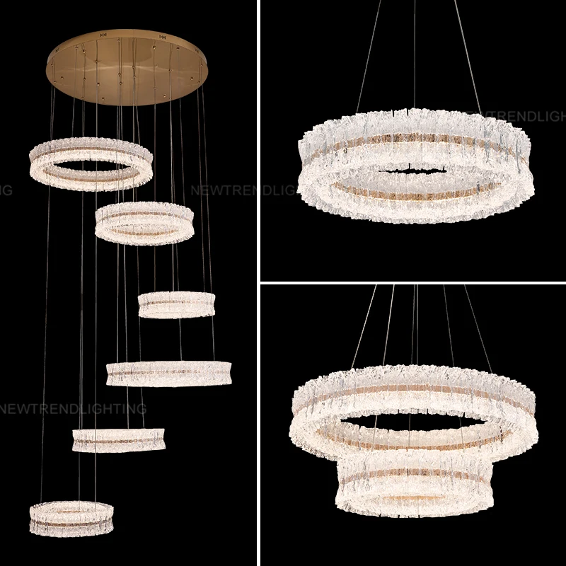 Modern Style Indoor Decoration Pendant Light for Living Room, Dining Room, Restaurant & Home – Acrylic LED Ring ChandelierThis elegant modern pendant light features a multi-tiered ring design crafted from high-transparency acrylic crystal...