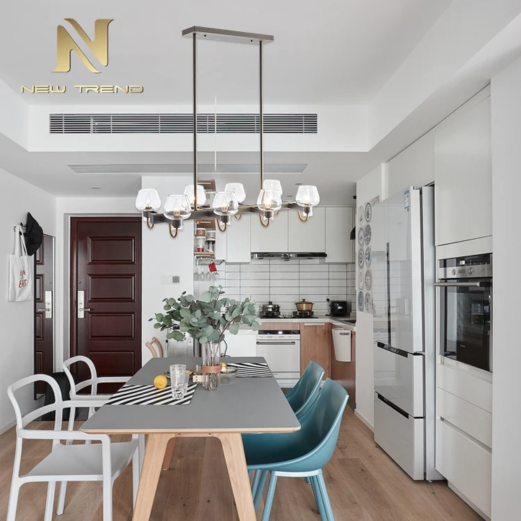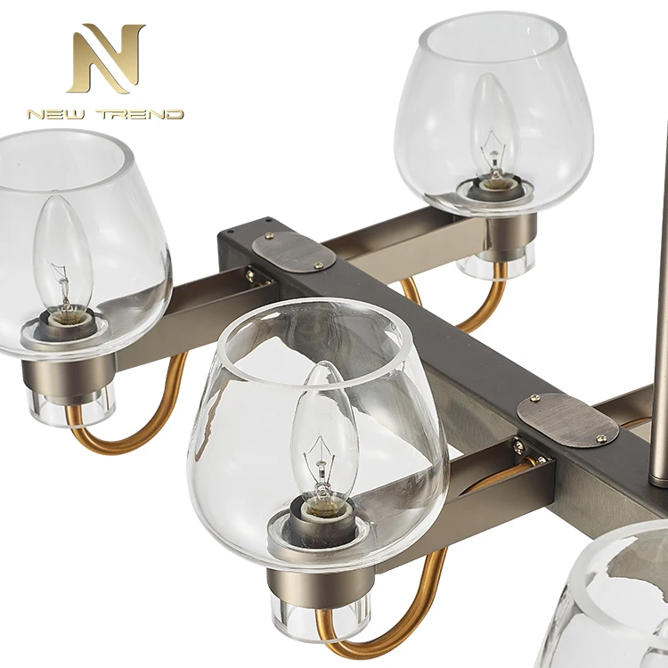 New Product Residential Decoration Living Room Dining Room 8 Lights LED ChandelierThis modern 8-light LED chandelier features a minimalist design with a sleek silver-toned metal frame supporting eight transparent glass shades, each housing an ener...