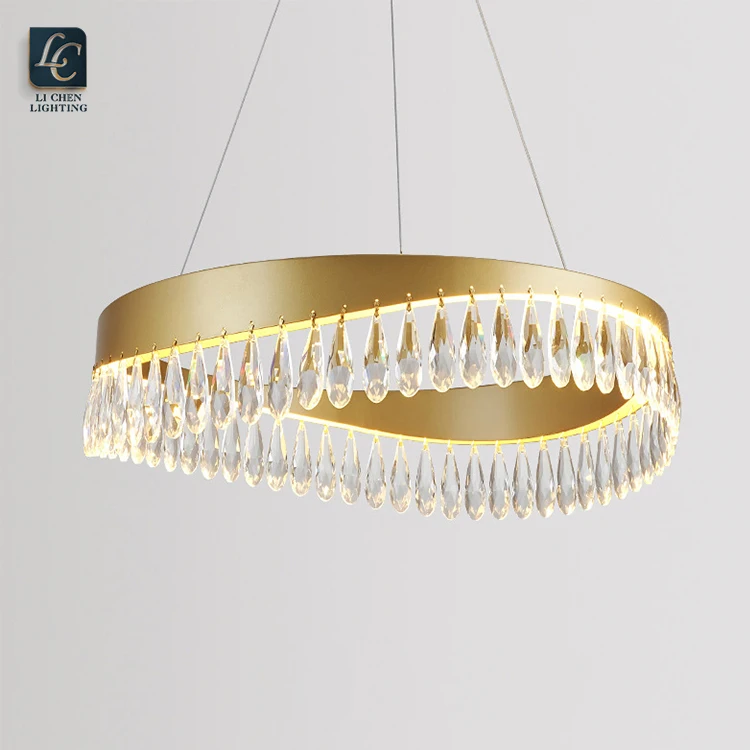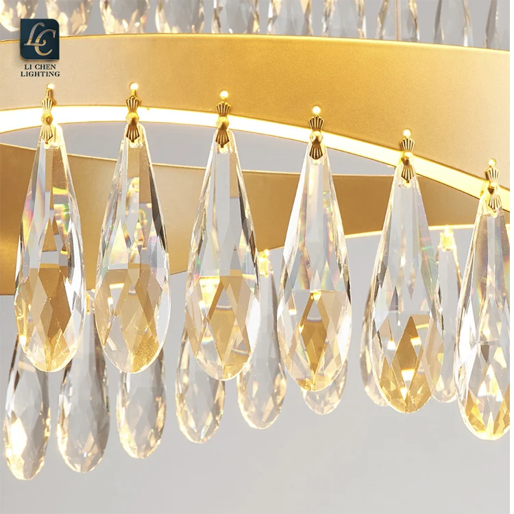 Wholesale Indoor Decoration Chandelier: Antique Brass Modern Crystal LED Light for Home, Hotel, and VillaThis elegantly crafted chandelier combines timeless antique brass finishes with contemporary design, featuring a gracefully curved oval frame a...