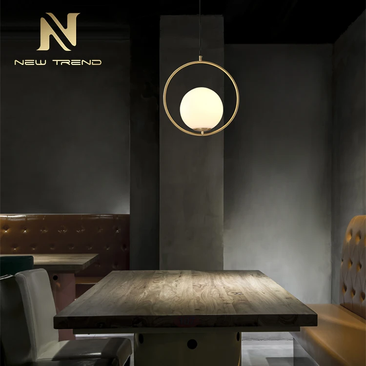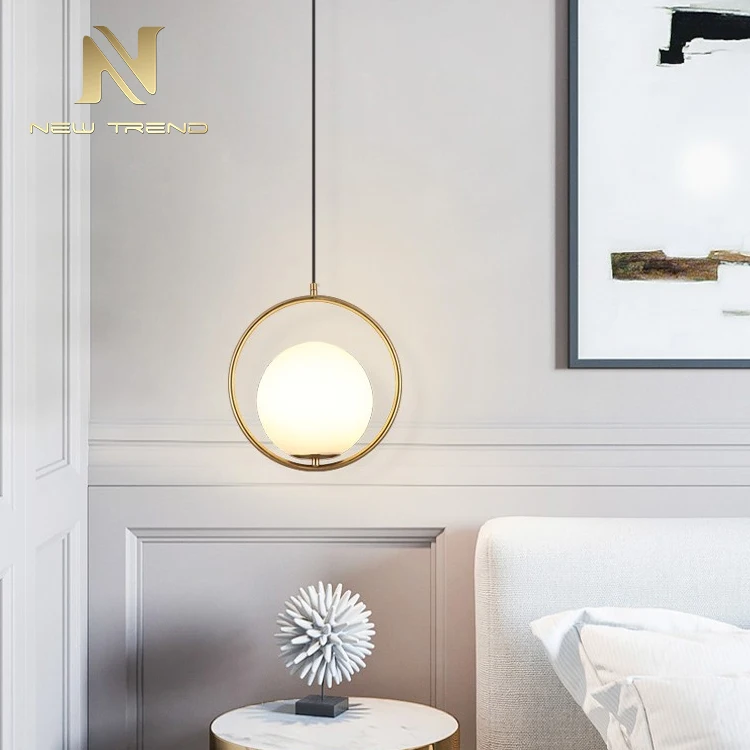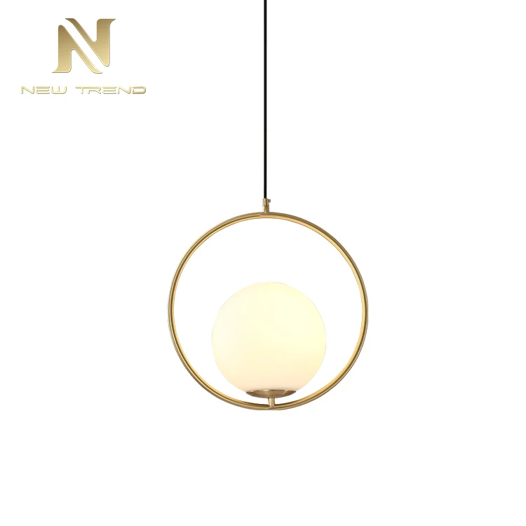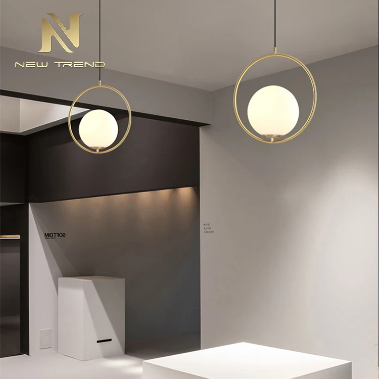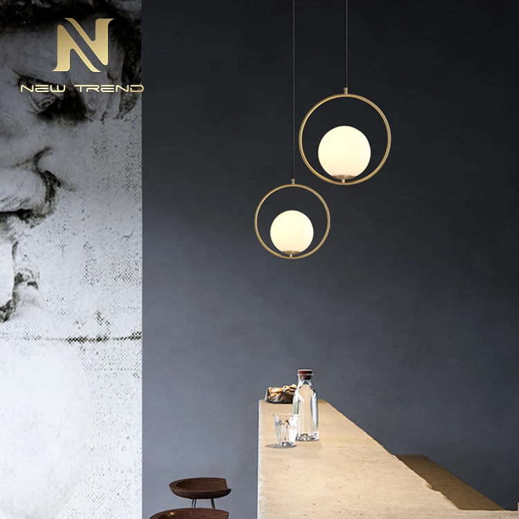 Modern Art Glass LED Pendant Lamp for Kitchen & Home Restaurant Wholesale Contemporary Chandeliers Pendant LightsThis contemporary pendant light set features three minimalist glass spheres encased in sleek golden rings, suspended at varying hei...