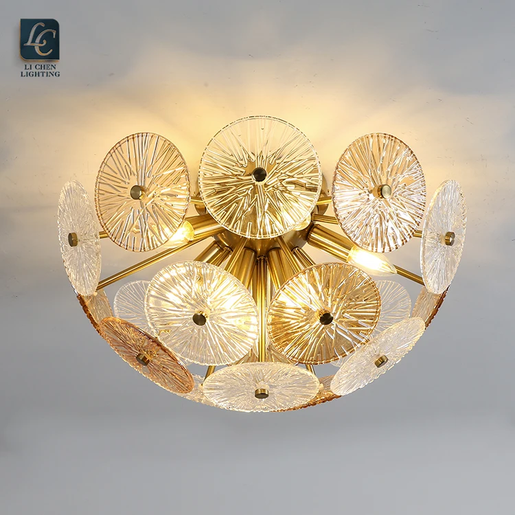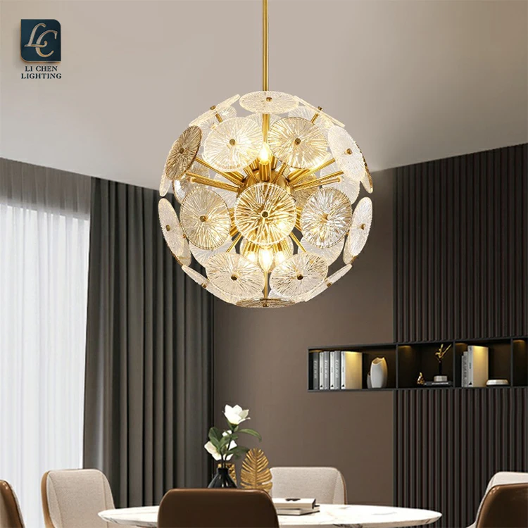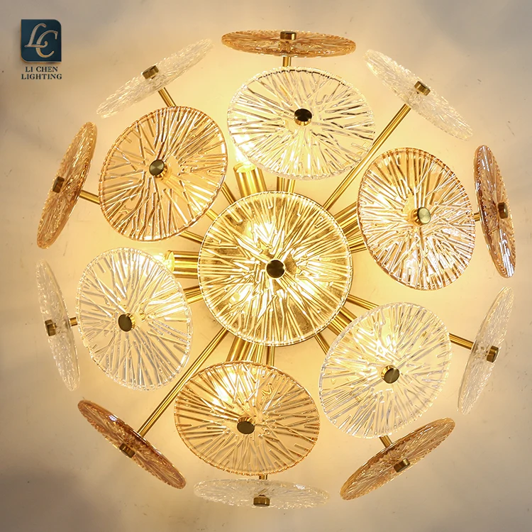 Contemporary Luxury Glass Ball Flower Ceiling Lamp for Living & Dining RoomsThis exquisite ceiling lamp redefines modern elegance with its artistic composition of layered glass "petals" radiating from a central golden sphere. Each translucent g...