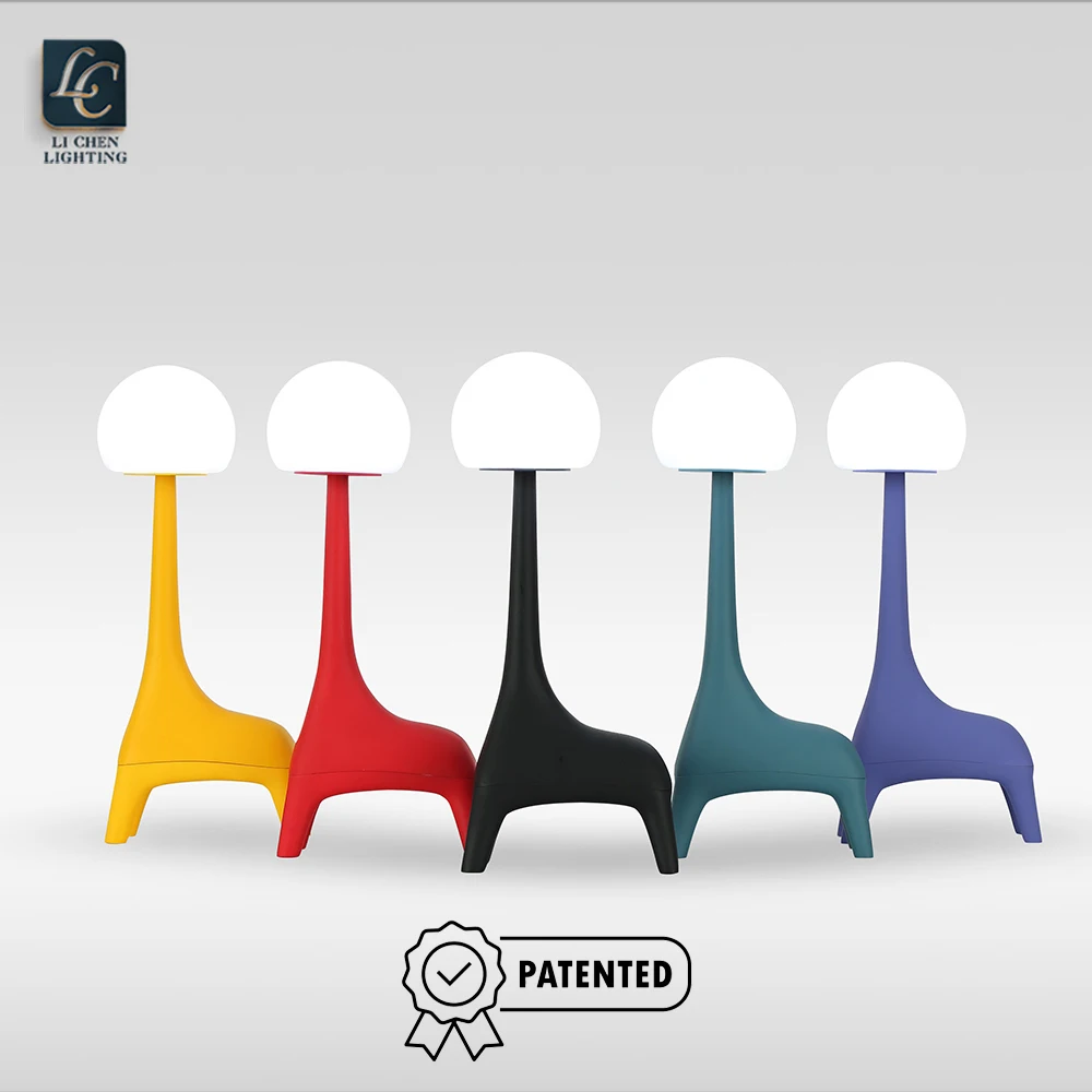 Rechargeable battery for portable, cord-free use Soft, warm LED light safe for children’s eyes Sturdy and stable three-point base design Non-toxic, child-safe materials