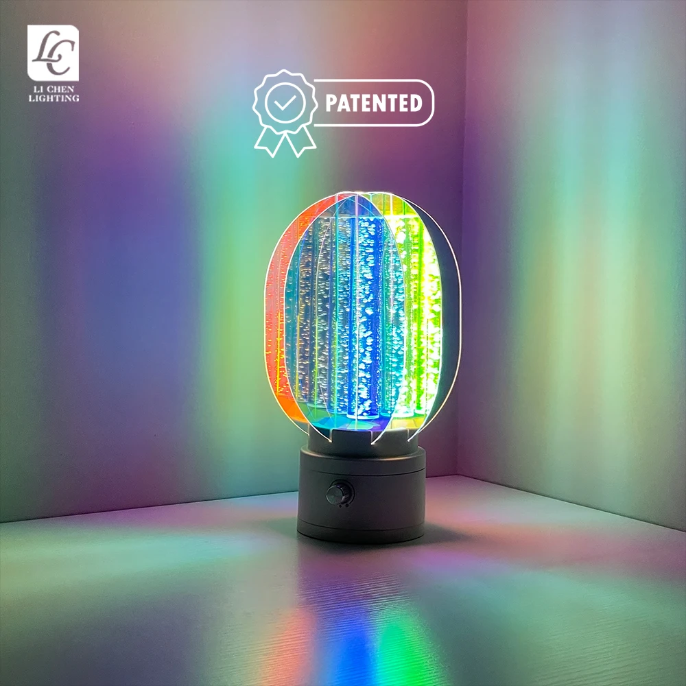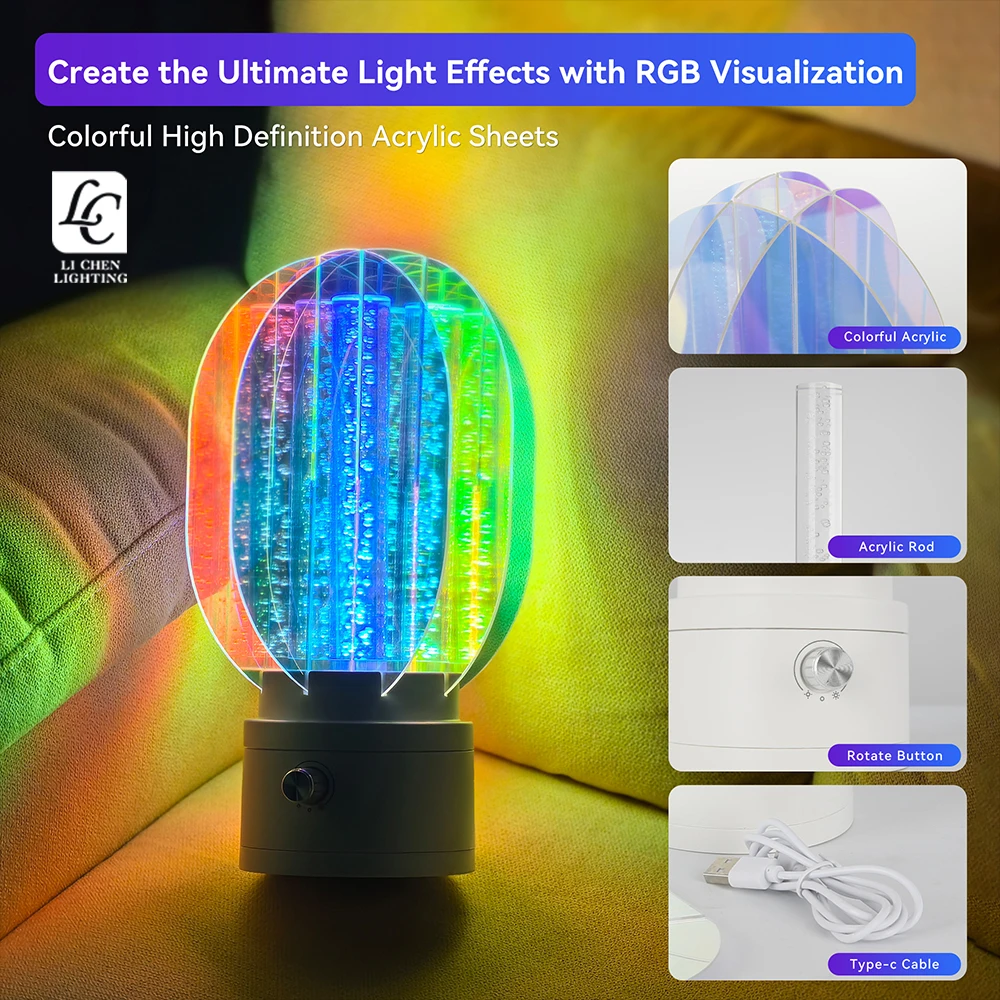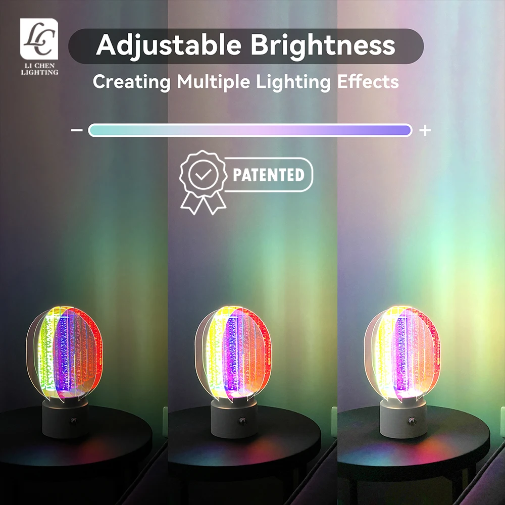 Patented Aurora Effect: Vertical tube array with flowing luminous particles RGB Spectrum Lighting: Smooth color transitions across the rainbow spectrum Portable & Rechargeable: USB-C charging, 4–6 hour battery life Multi-Mode Control: Steady color, dynamic gradient, or soft night light mode Modern Application: Enhances bars, homes, hotels, or creative spaces