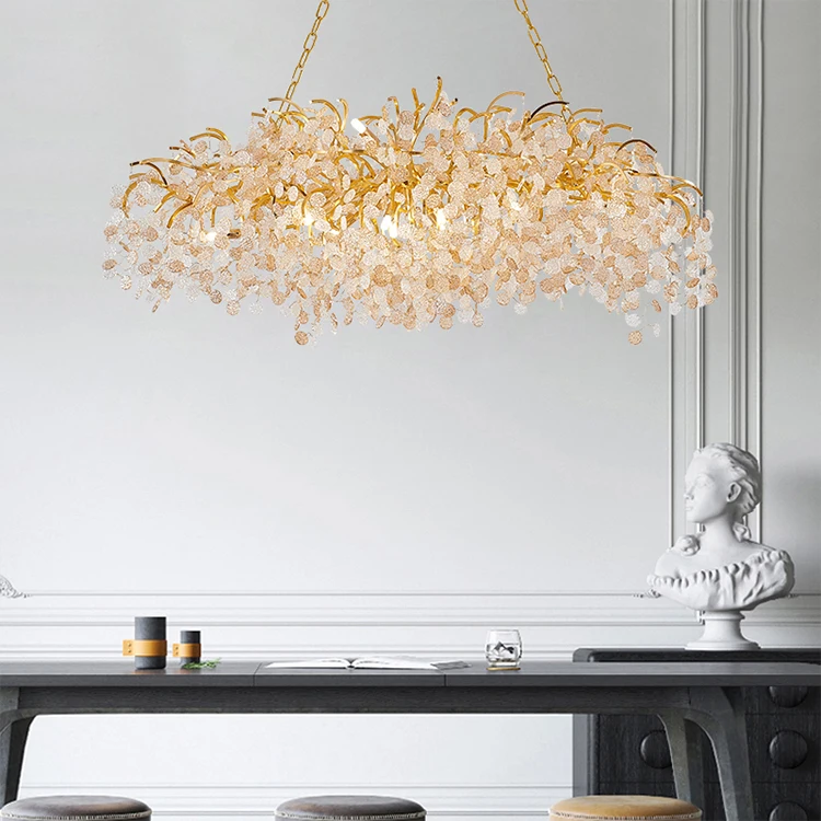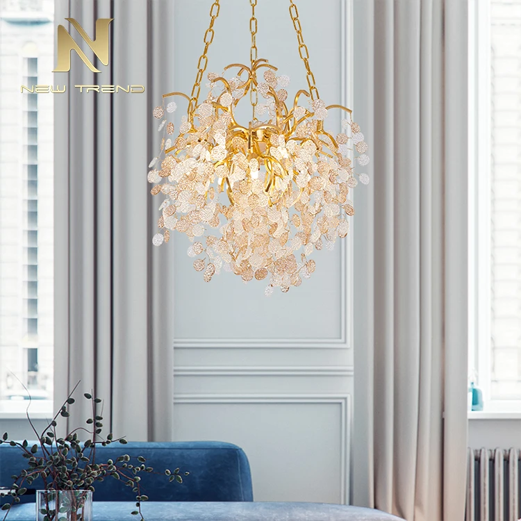 Hot Selling Gold Color Aluminum Clear Glass Indoor Decoration for Bedroom ChandelierThis elegant chandelier features a delicate golden aluminum frame adorned with cascading layers of transparent glass discs, meticulously arranged to mimic blooming...