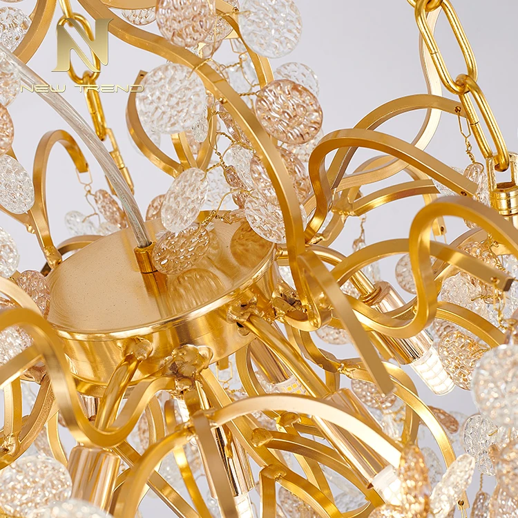 PYL804C Hot Selling Gold Color Aluminum Clear Glass Indoor Decoration For Bedroom Chandelier
