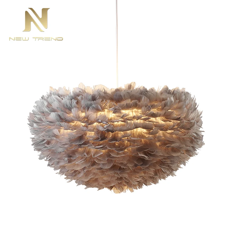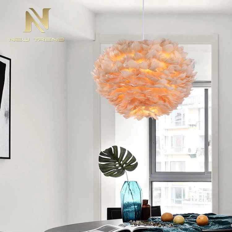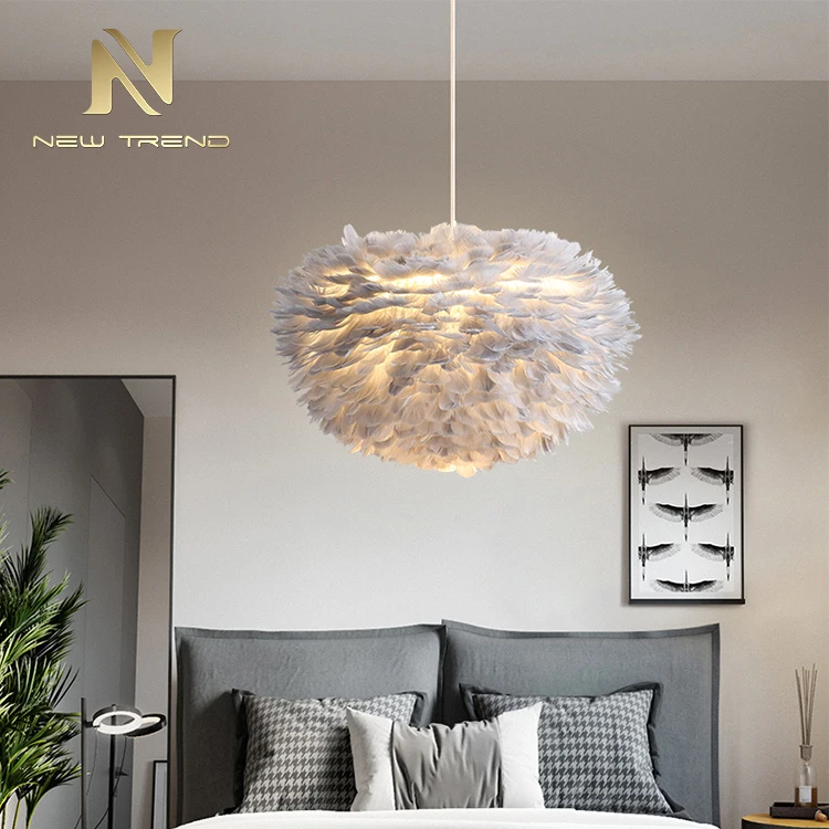โคมไฟจี้ LED ตกแต่งภายในสไตล์โมเดิร์น สีขาว ขนนก ขนาด 30 ซม. 40 ซม. 50 ซม. 60 ซม. ขั้ว E27