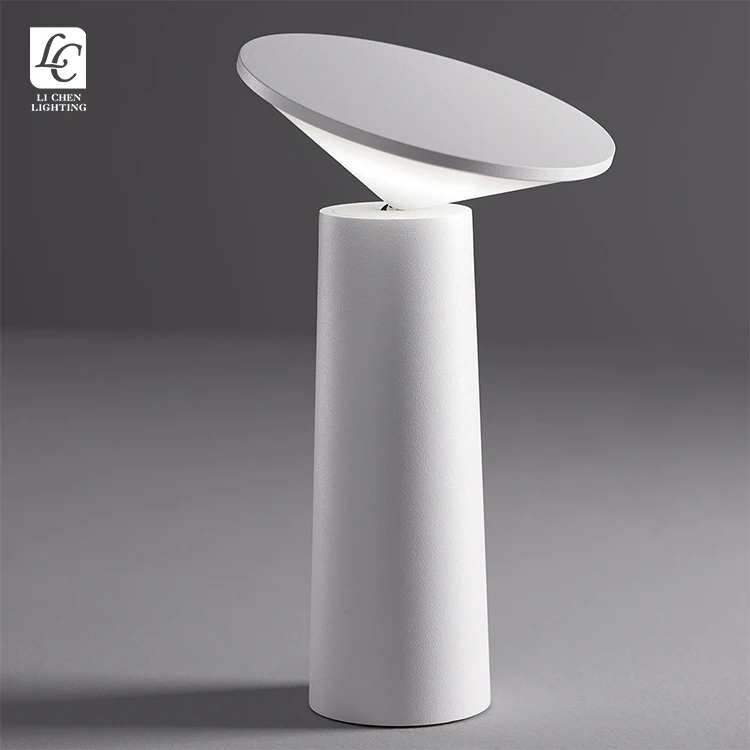 Hot Sale Modern LED Table Light for Hotel Room, Bedroom, Bar & CampingThis minimalist LED table lamp features a sleek cylindrical base and an adjustable wide shade, offering focused lighting with a soft glow. Available in classic black and whi...