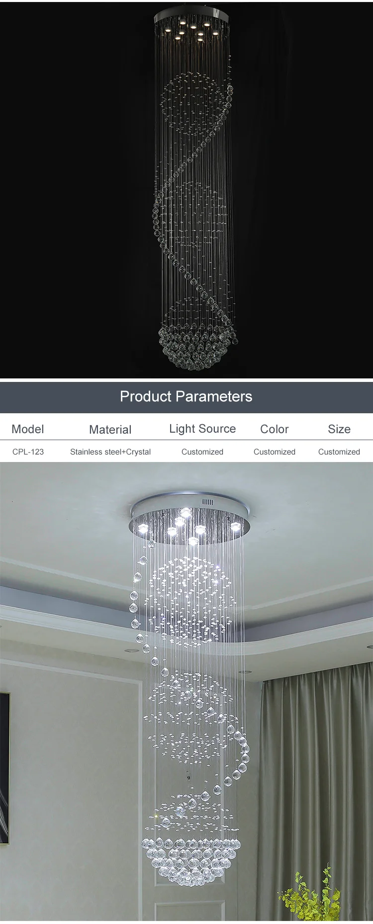 CPL-123 Çağdaş Tarz İç Mekân Dekorasyonu Villa Otel Foye Merdiven Lüks Kristal Avize Lamba