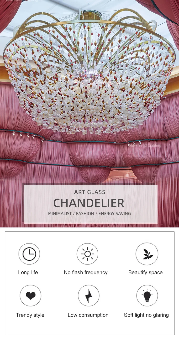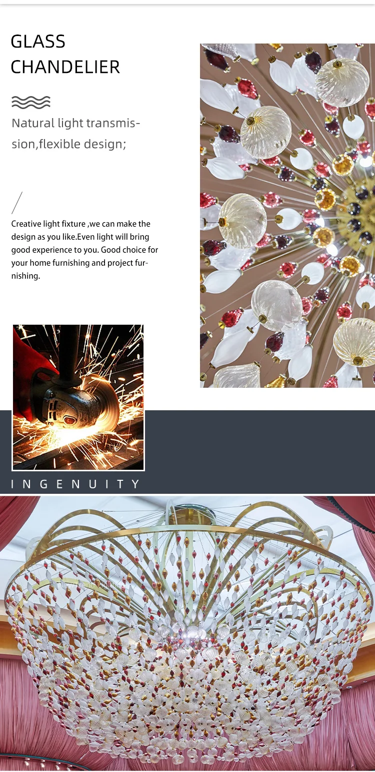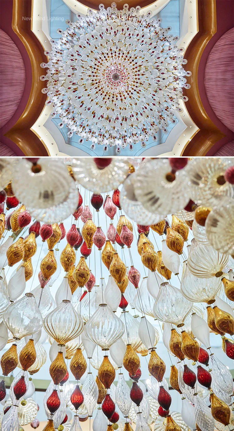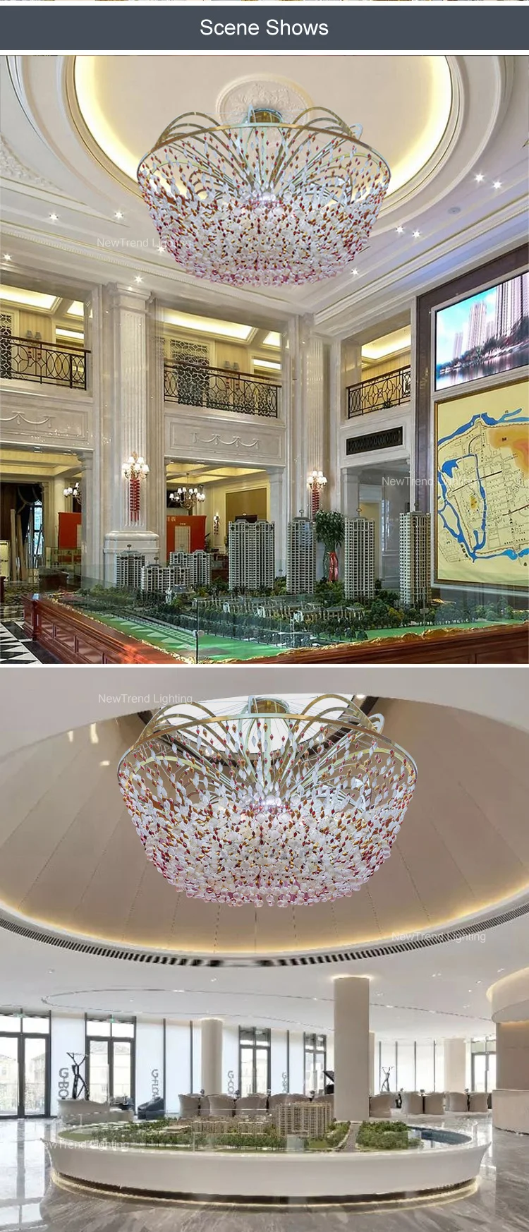 CPL-367 Lüks Tarz İç Mekân Otel Foyer Köşk Banket Dekorasyonu İçin Özel Büyük Cam LED Tavan Avizesi