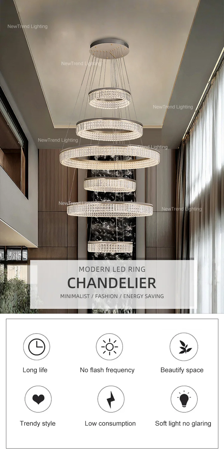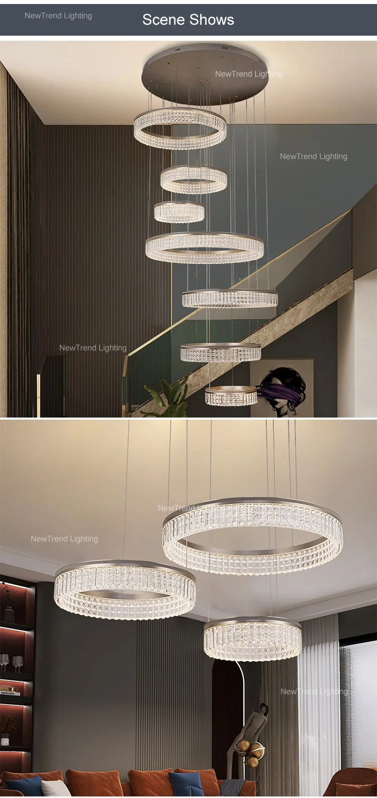 Oturma Odası, Yemek Odası, Restoran ve Merdiven İçin Lüks İç Mekân Dekoratif Salyangoz Işık – Akrilik Kristal LED Halka AvizeBu muhteşem lüks avize, yüksek şeffaflıklı akrilikten yapılan çok katmanlı halka tasarımı ile dikkat çeker...