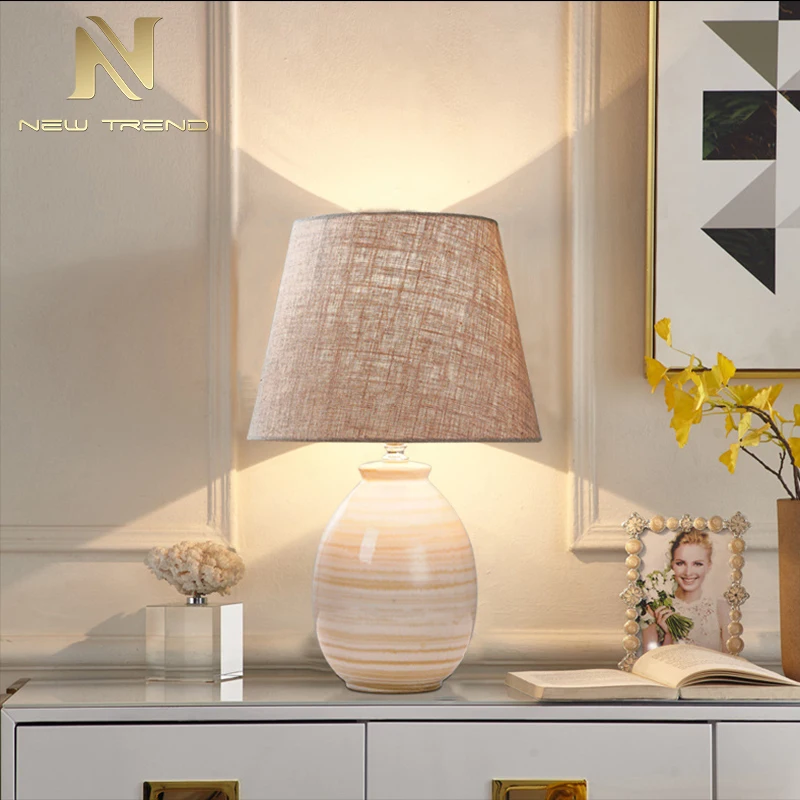 TR0022 Restaurant Hotel Room Vintage Style Indoor Decoration Bedside Ceramic LED Table Lamp