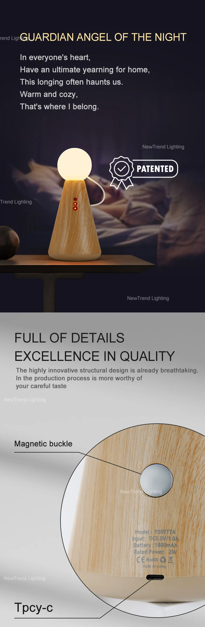 Mahsulotlar Tavsifi Model Raqami P3097TA Materiali ABS+ PE+Silika gel Kirish kuchlanishi DC 5V 1A Type-C Kafolat 2 yil O'lchami D116*H240mm Sertifikatlash CE/VDE/SAA/ETL Xotira sovg'a LED kechki chirog'i Bolalar, Bebek xonasi, Yotoqxona, Zaryadsiz stol chirog'i Xotira...