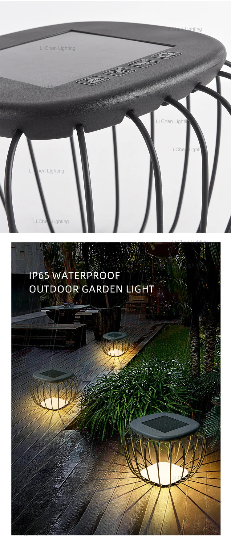 Thân đèn đan bằng thép không gỉ đảm bảo độ bền và tính thẩm mỹ Tấm pin mặt trời tích hợp với chế độ hoạt động tự động từ hoàng hôn đến bình minh Đèn LED trắng ấm tạo ánh sáng mềm mại, dịu nhẹ Bảo vệ chống nước và chống bụi đạt tiêu chuẩn IP65