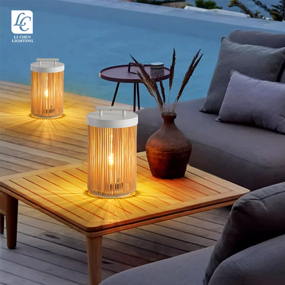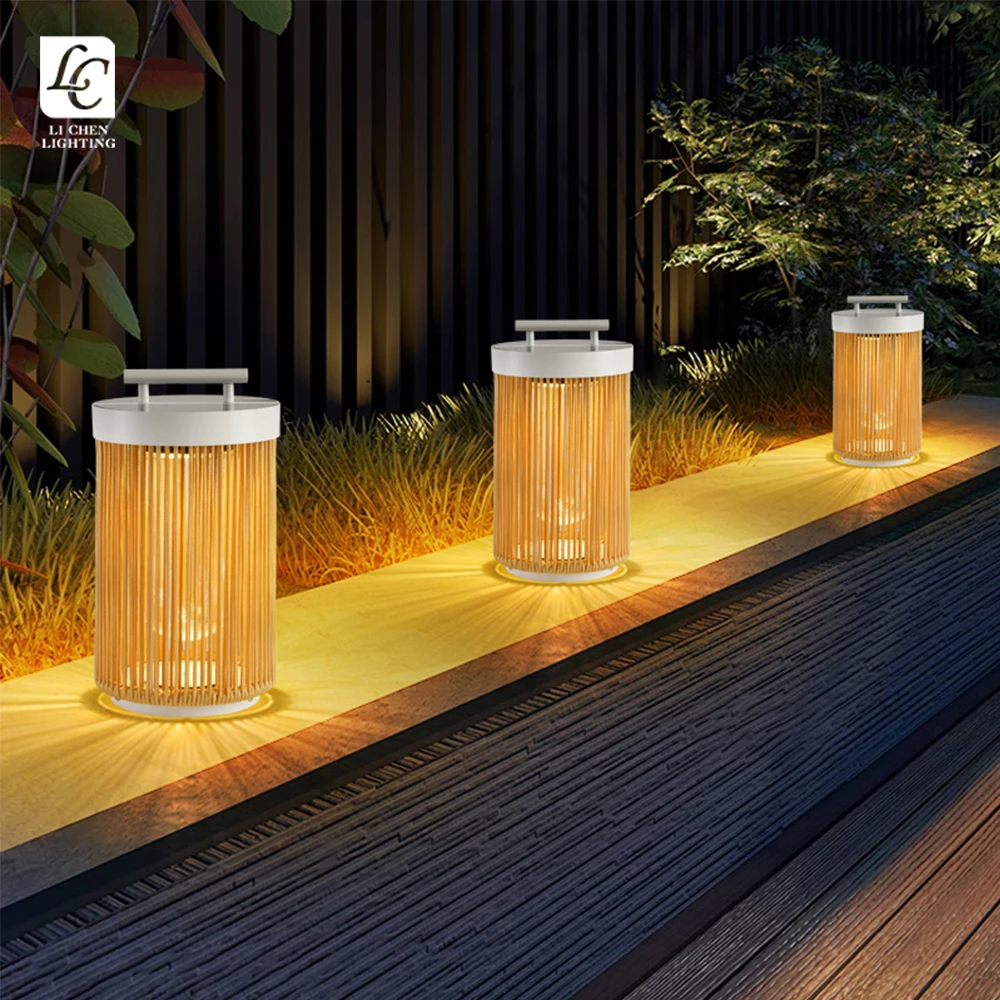 Đèn Led Ngoài Trời Chạy Bằng Năng Lượng Mặt Trời HW02, Đèn Cắm Trại, Đèn Vườn Sạc Được, Chống Nước Ip65, Làm Từ Mây Tre